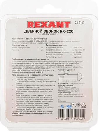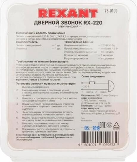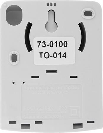 Электрический звонок проводной без кнопки. Сфера применения: Для подачи звукового сигнала в жилых, служебных и общественных помещениях. Количество мелодий: 1. Цвет: Мягкий белый. Номинальное напряжение: 220 В. Материал: ABS-пластик. Степень защиты: IP20. Ширина: 35мм3. Высота, 98мм. Длина: 75мм. Масса, 0.083 кг.