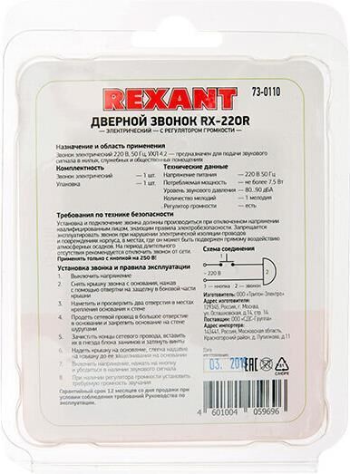 Электрический звонок проводной без кнопки. Сфера применения: Для подачи звукового сигнала в жилых, служебных и общественных помещениях, оснащен регулятором громкости. Количество мелодий: 1. Цвет: Мягкий белый. Номинальное напряжение: 220 В. Материал: ABS-пластик. Степень защиты: IP20. Ширина: 35мм3. Высота, 98мм. Длина: 75мм. Масса, 0.083 кг.