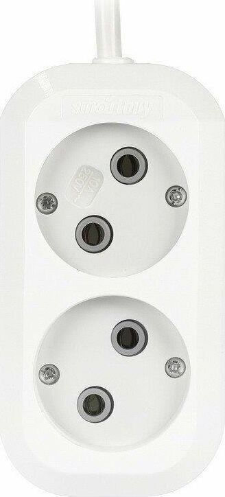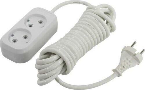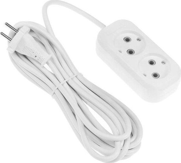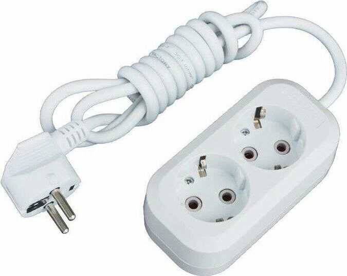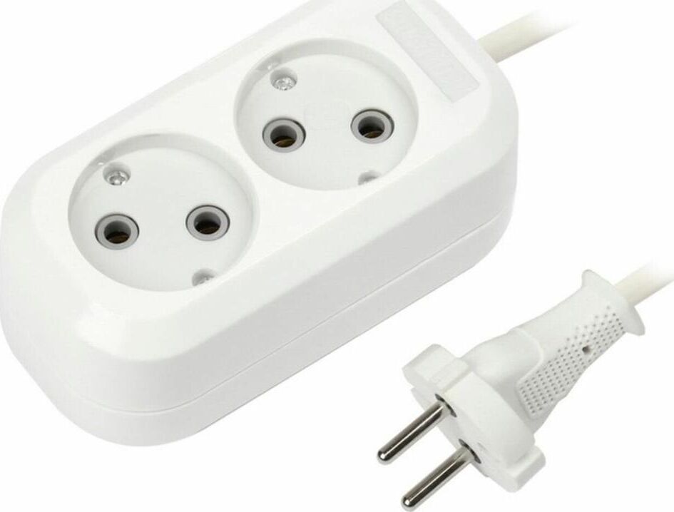 Удлинитель, количество розеток - 2, номинальный ток, А - 10, номинальное напряжение: 250 В; частота: 50 Гц; тип провода: ПВС 2x1,0мм; материал корпуса: АБС-пластик; климатическое исполнение: УХЛ-3; степень защиты от влаги и пыли: IP-20; длина провода - 5 м.
