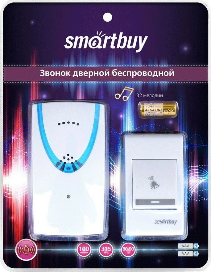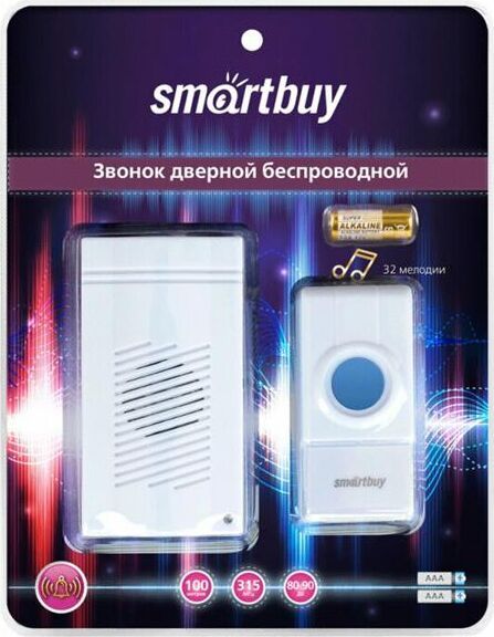 "Кнопка: 23A 12V / DC Приемник: 3 В / DC (батарейки 2 ? 1,5 В AAA) Рабочая частота: 315 МГц Звуковой сигнал: 80 ~ 90 Дб Расстояние: 100 м Тип звука: 32 мелодии Цифровая кодировка отсутсвует"