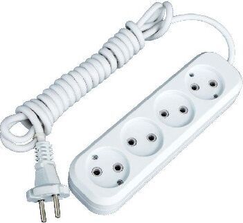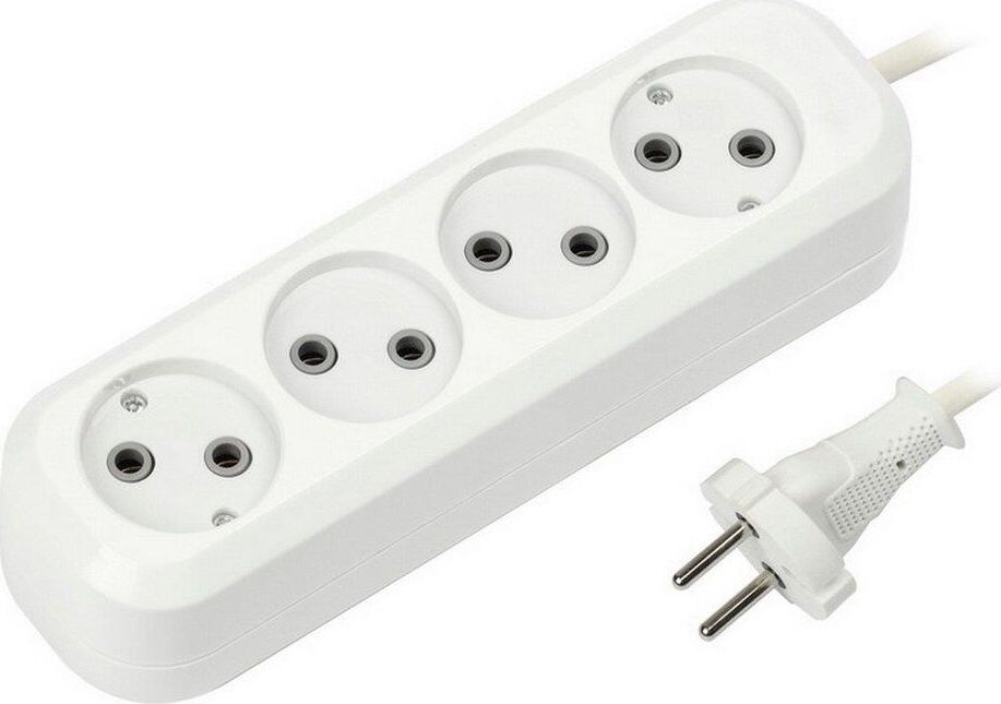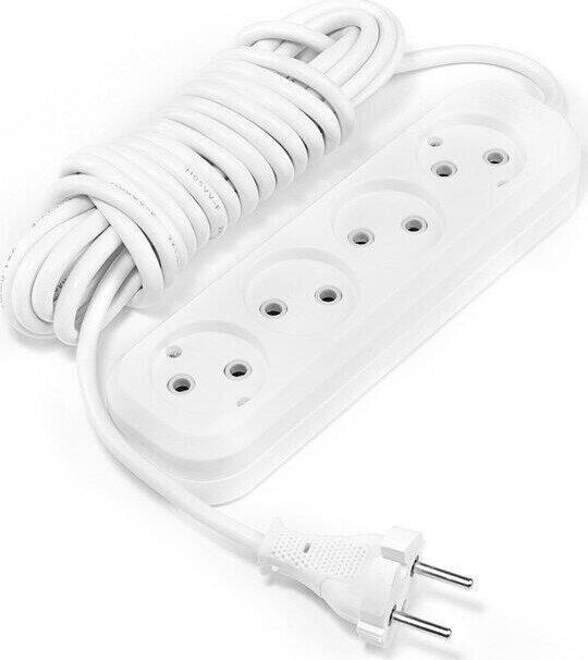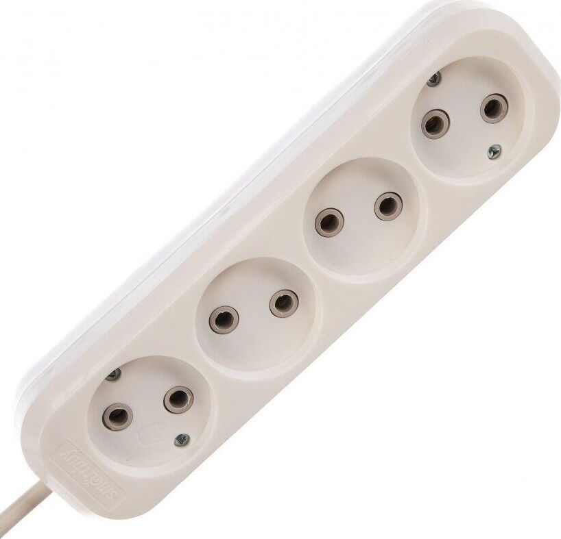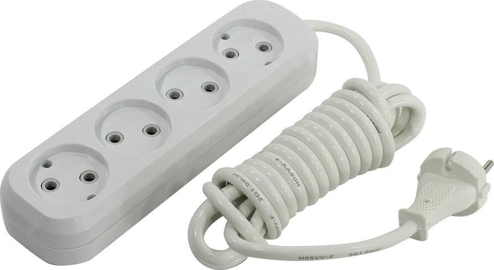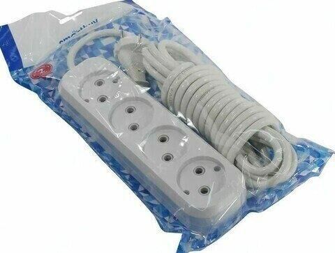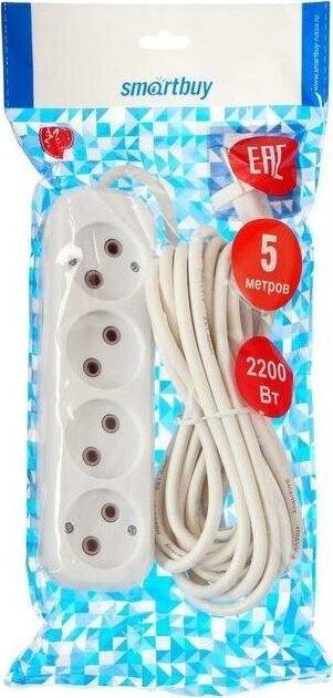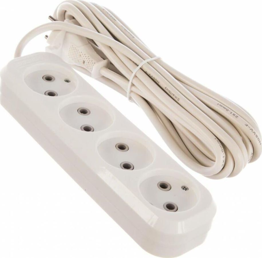 Удлинитель, количество розеток - 4, номинальный ток, А - 10, номинальное напряжение: 250 В; частота: 50 Гц; тип провода: ПВС 2x1,0мм2; материал корпуса: АБС-пластик; климатическое исполнение: УХЛ-3; степень защиты от влаги и пыли: IP-20; длина провода - 5 м.