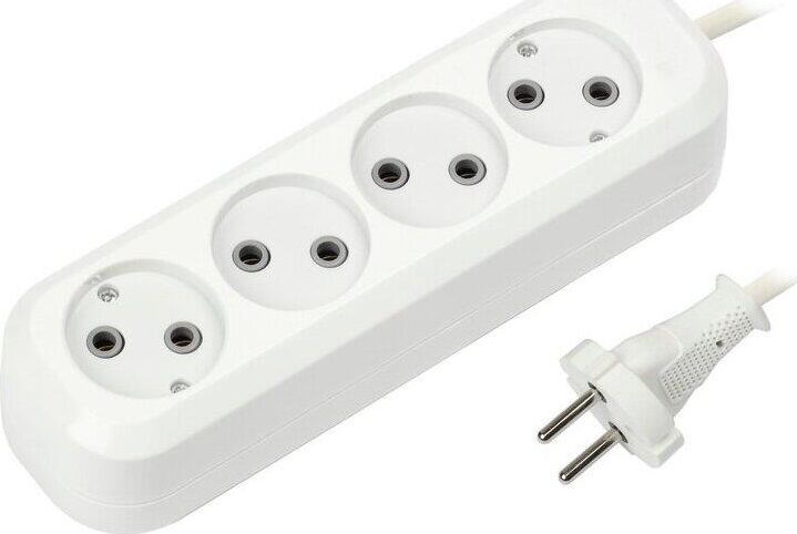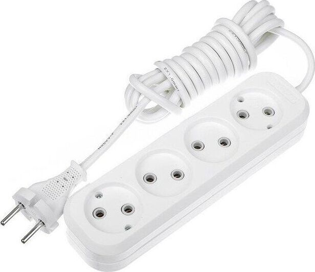 Удлинитель, количество розеток - 4, номинальный ток, А - 10, номинальное напряжение: 250 В; частота: 50 Гц; тип провода: ПВС 2x1,0мм2; материал корпуса: АБС-пластик; климатическое исполнение: УХЛ-3; степень защиты от влаги и пыли: IP-20; длина провода - 3 м.