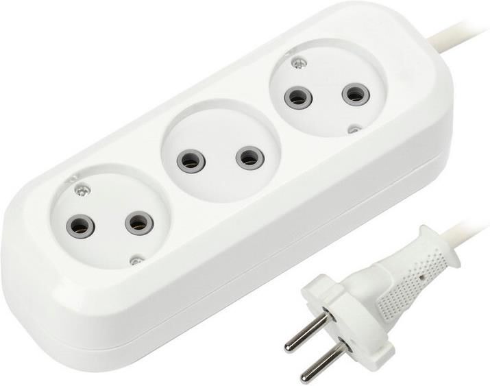 Удлинитель, количество розеток - 3, номинальный ток, А - 10, номинальное напряжение: 250 В; частота: 50 Гц; тип провода: ПВС 2x1,0мм; материал корпуса: АБС-пластик; климатическое исполнение: УХЛ-3; степень защиты от влаги и пыли: IP-20; длина провода - 10 м.