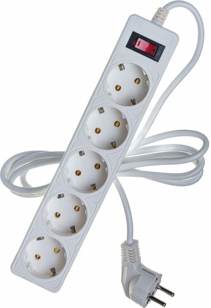 Комплектация: Сетевой фильтр Космос 5 розеток 1.8м 10A с заземлением ПВС 3x0.75, белый. , Электробезопасность: Заземление