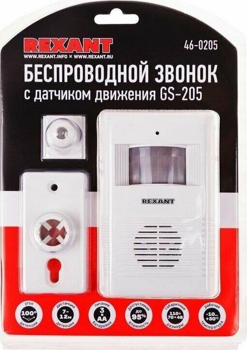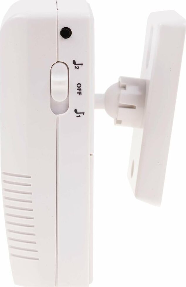 Беспроводной звонок с датчиком движения, предназначен для оповещения при входе в помещение. Простая установка, не требующая никаких проводов. Работает от 3-х батареи тип "АА". Особенности: - До года автономной работы - Автонастройка дистанции детекции - 32 мелодии на выбор - Кнопка Вкл/Выкл оповещателя - Два уровня громкости оповещения - Питание: работает от 3-х батареи "тип АА" - Дополнительный разъем питания (DC 6В) Технические характеристики: - Угол детекции: 100° - Дистанция детекции: 7-12м. - Рабочая температура: -10 .... +50 °С - Допустимая влажность: до 95% без конденсата - Габаритные размеры: 110х70х48 мм