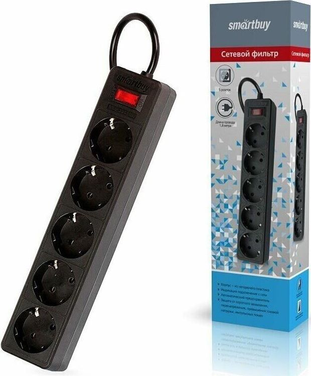 Номинальное напряжение: 220-230 В. Частота: 50-60 Гц. Максимальная мощность: 2200 Вт. Защита от короткого замыкания. Защита от перенапряжения. Защита от превышения токовой нагрузки. Защита от импульсных помех. 5 розеток. Корпус из негорючего пластика.