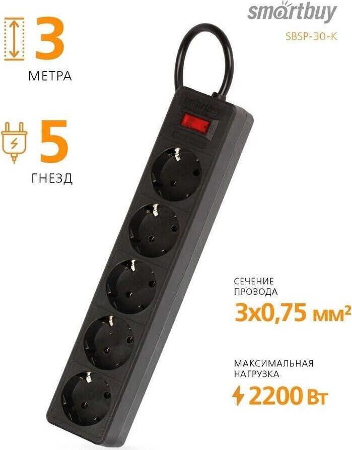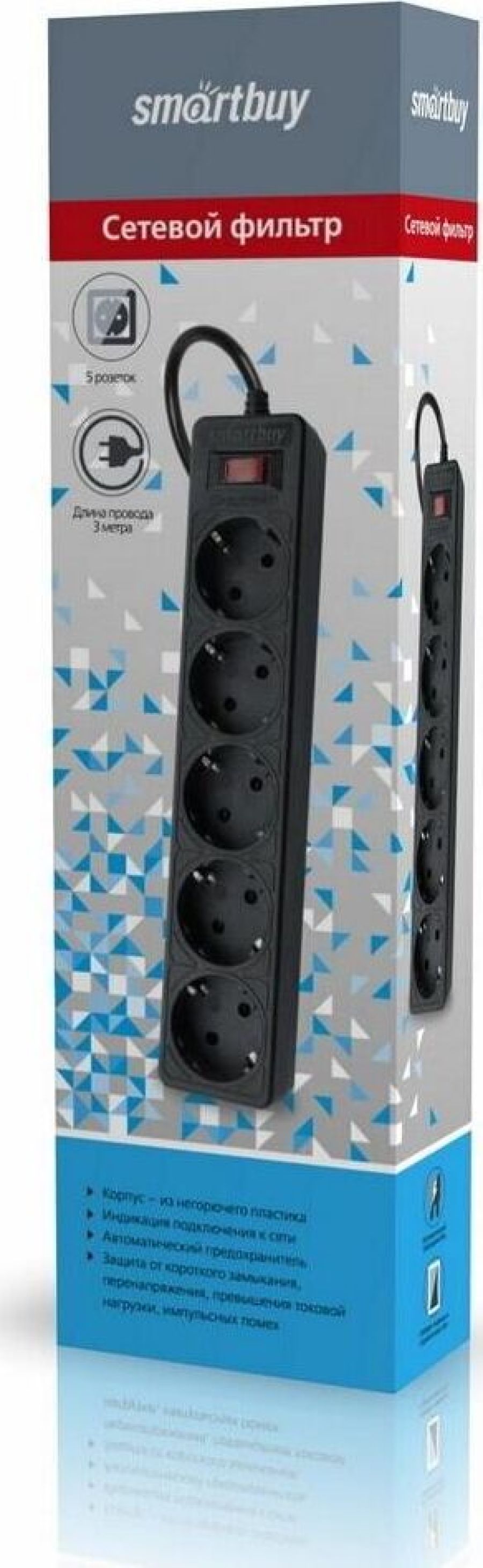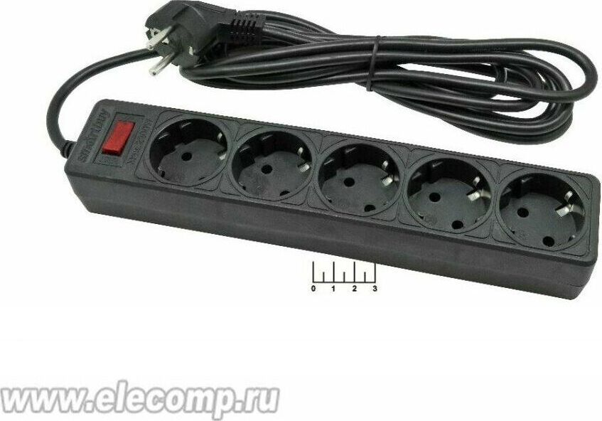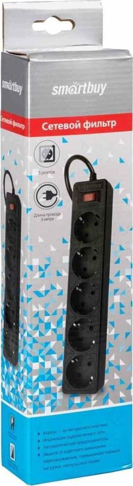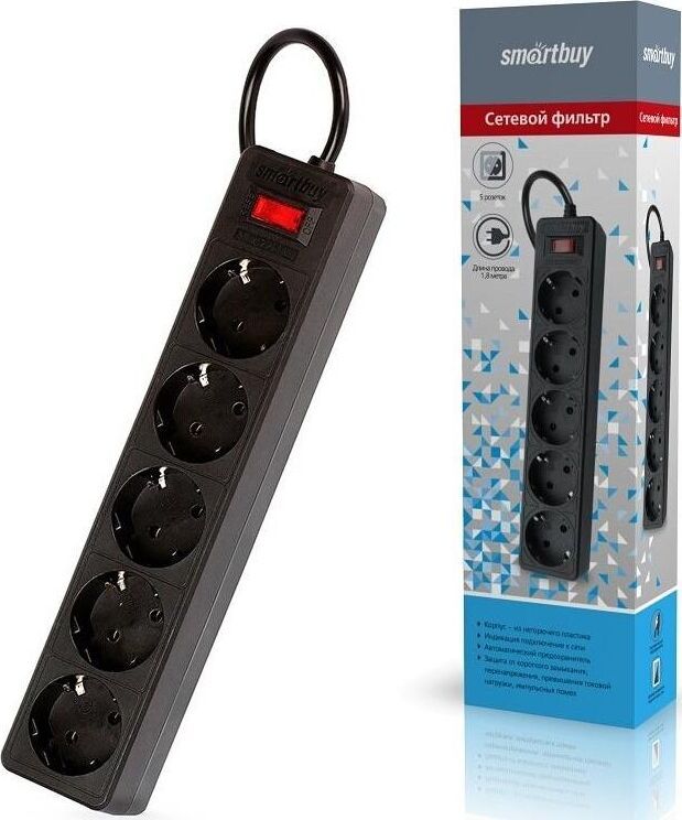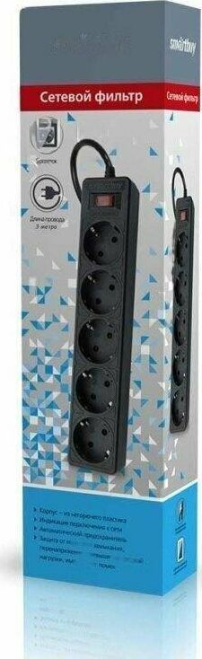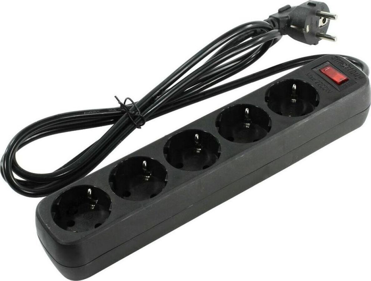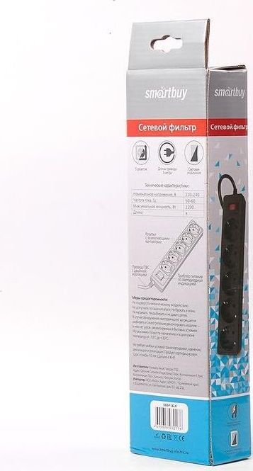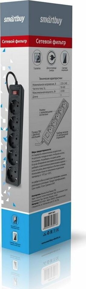 Номинальное напряжение: 220-230 В. Частота: 50-60 Гц. Максимальная мощность: 2200 Вт. Защита от короткого замыкания. Защита от перенапряжения. Защита от превышения токовой нагрузки. Защита от импульсных помех. 5 розеток. Корпус из негорючего пластика.