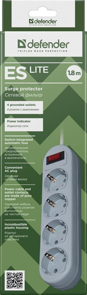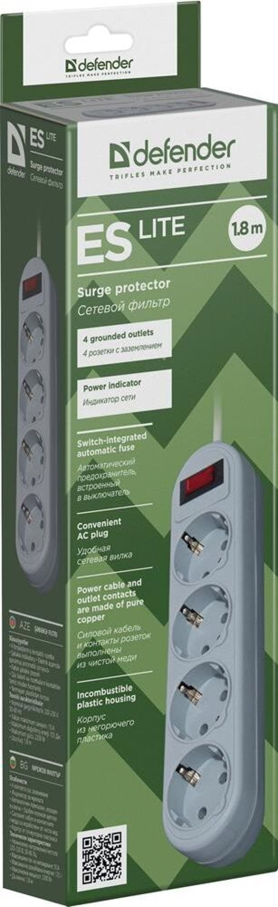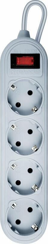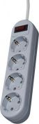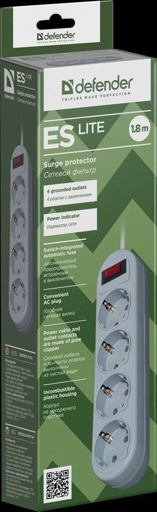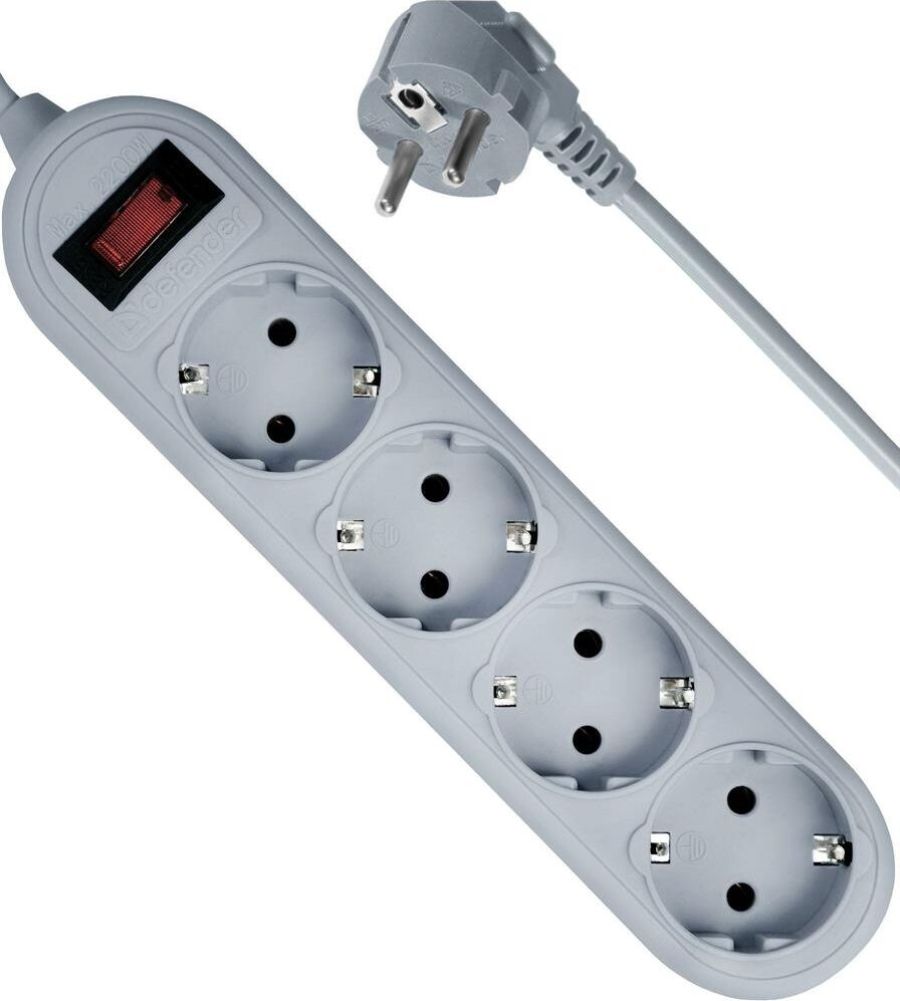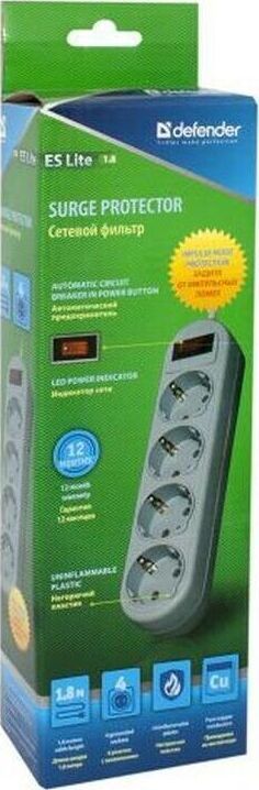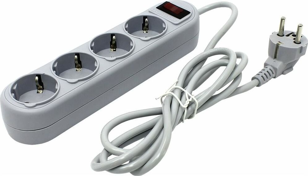 Сетевой фильтр, количество розеток - 4 шт., длина кабеля - 1,8, номинальное напряжение/частота - 230 В / 50 Гц, максимальная суммарная мощность нагрузки - 2200 Вт, максимальный ток нагрузки - 10 А, материал корпуса - негорючий пластик, форма упаковки - картонная коробка.