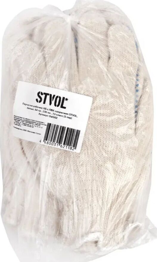 Перчатки рабочие STVOL SWG02 Перчатки рабочие ХБ с ПВХ покрытием, белые, 64 гр., 230 пл., 7,5 класс 5 пар в интернет магазине КорБТ