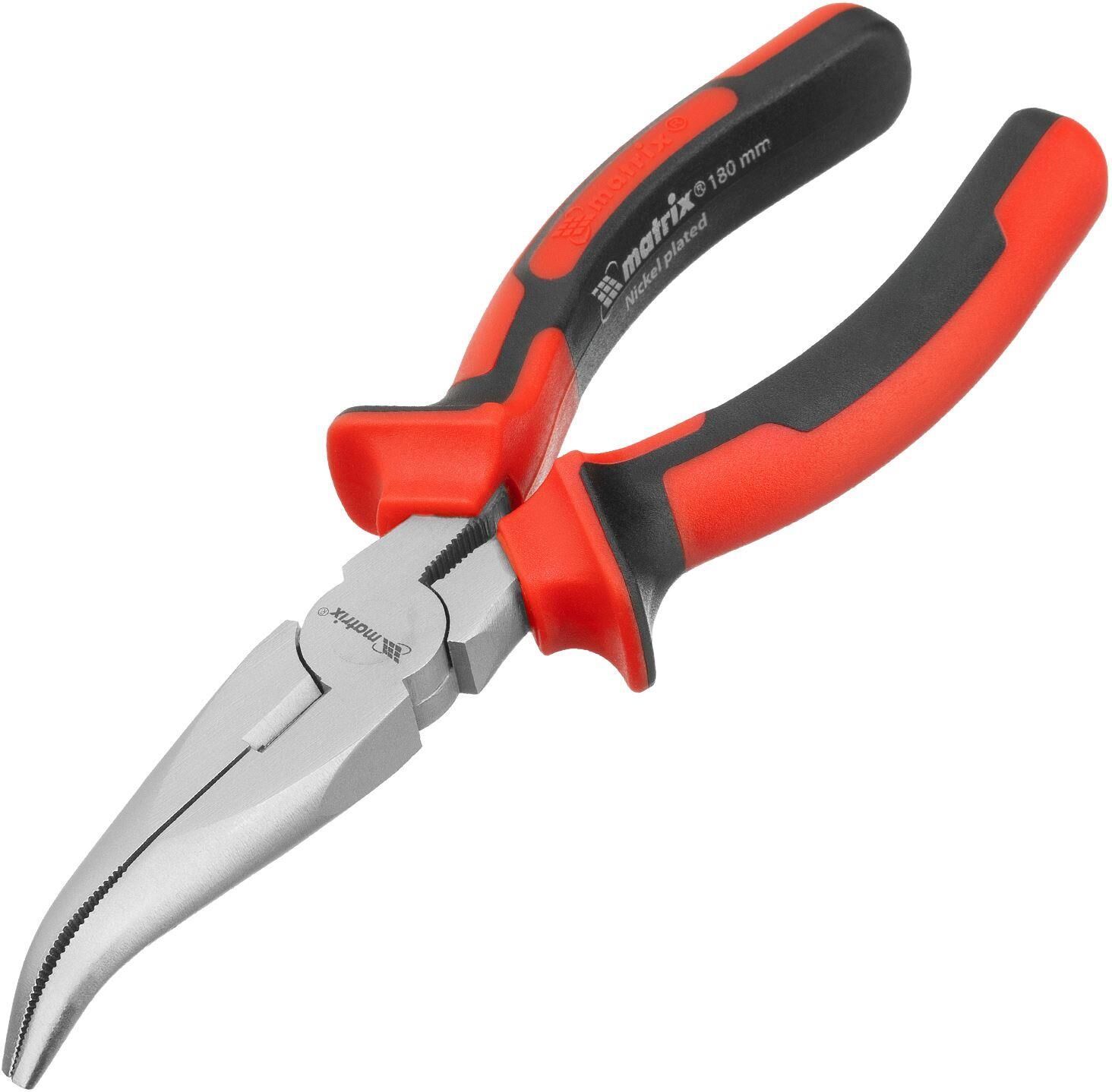 Изогнутые никелированные длинногубцы Matrix NICKEL 17422 длиной 180 мм, с двухкомпонентными рукоятками, помогают удерживать небольшие детали, перекусывать проволоку. Изогнутая форма губок позволяет дотягиваться до деталей в труднодоступных местах. Длинногубцы используются для проведения ремонтных и монтажных работ. Преимущества Повышенная прочность — инструмент изготовлен из высококачественной стали, рабочие кромки закалены до твердости 53 HRC. Износостойкость и защита от коррозии — на рабочие части нанесено никелевое покрытие. Комфортная работа — двухкомпонентные рукоятки удобно лежат в руке и не выскальзывают из ладони.