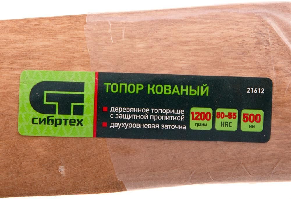 Топор изготовлен из 45 стали . Топорище инструмента изготовлена из древесины твердых лиственных пород. Вес с топорищем 1550 г. Общая длина в сборе составляет 500 мм. параметры Материал рукоятки: древесина Длина, мм: 540 Особенности: кованый Материал полотна: сталь 45 Тип упаковки: цветной стикер Длина рукоятки, мм: 500 Вес, кг: 1.665 Вес полотна, г: 1200 г Длина в упаковке мм: 540 Ширина в упаковке мм: 175 Высота в упаковке мм: 45 Штрихкод: 4606800088642 Брэнд: СИБРТЕХ Артикул: 21612 Комплектация: топор - 1