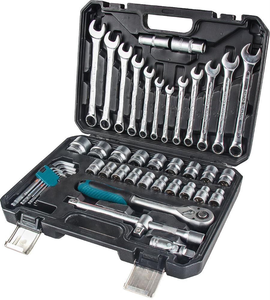 Brand: BORT Предметов в наборе, шт: 47 Материал: Сталь CRV Вес нетто, кг: 5,4 Вес брутто, кг: 5,56 Габариты упаковки, см: 37,5 x 27,5 x 8 Гарантия, г: 2 Расширенная гарантия, г: 5 Мастер-бокс, шт: 1 EAN13: 4260623418521 Модель: BTK-47