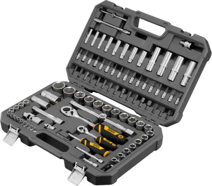 Набор инструментов Denzel 15813 состоит из 94 предметов из стали CrV и S2, с присоединительными квадратами 1/4", 1/2", и упакован во вместительный усиленный кейс собственной разработки с антивандальным покрытием. В комплект поставки входят инструменты и оснастка для монтажа и демонтажа резьбовых соединений. Набор предназначен для профессионального использования в автомастерской, будет полезен для решения бытовых вопросов.