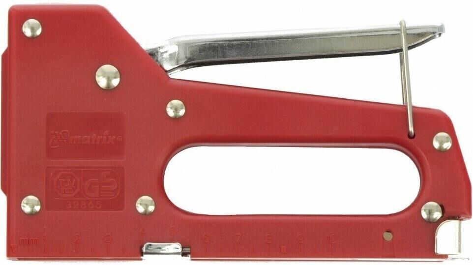 Пластиковый мебельный степлер Matrix 40907 используется с короткими скобами типа 53 размером 4-8 мм. Применяется для закрепления на деревянном основании тонких листовых материалов — оргалита, ДСП, ДВП, фанеры, пленки или утеплителя. Инструмент будет полезен для выполнения бытовых работ по перетяжке кресел или стульев, а также сборке мебели.ПреимуществаДолговечность — корпус из ударопрочного ABS-пластика устойчив к повреждениям.Безопасное хранение и транспортировка — скоба-фиксатор удерживает рукоятку в нерабочем положении.Гарантированное качество — инструмент изготовлен на высокотехнологичном оборудовании и прошел строгий контроль качества.