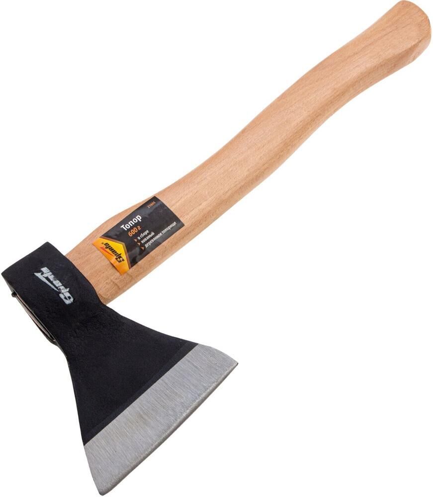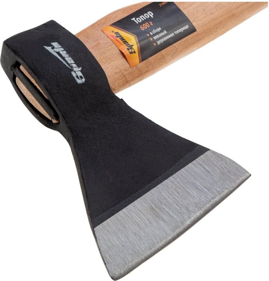 Кованый топор Sparta 21605 с рабочей частью весом 600 г, в сборе с деревянным топорищем, пригодится для решения несложных хозяйственных задач. Им можно рубить ветки, инструмент подходит также для заготовки дров. Полукруглая режущая кромка облегчает выполнение поставленных задач.ПреимуществаТопор изготовлен из стали 45 методом свободной ковки, поэтому обладает необходимыми прочностными характеристиками.Режущая кромка закалена до оптимальной твердости 50 HRC, за счет чего отличается износостойкостью и долго сохраняет остроту.Деревянное топорище покрыто лаком для предотвращения рассыхания.Небольшой вес полотна 600 г снижает усталость в руках при продолжительной работе.Топор компактен за счет небольшой рукоятки длиной 360 мм, поэтому его удобно транспортировать.