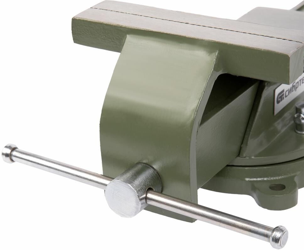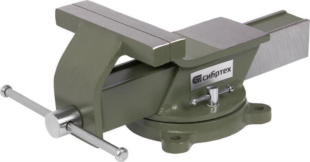 Стальные слесарные тиски Сибртех 18620 с поворотным механизмом и прижимными винтами имеют ширину губок 150 мм и предназначены для жесткой фиксации деталей. Используются для сверления, шлифования, пиления, выполнения сборочных и других работ. Тиски вращаются на 360°, что позволяет придать заготовке оптимальное положение. Приспособление будет полезно в мастерской, на даче и в гараже.ПреимуществаЛегкая и надежная конструкция — тиски изготовлены из прочной стали и рассчитаны на длительное использование.Простая установка — в основании имеются отверстия для крепления к верстаку.Дополнительные возможности — на корпусе есть наковальня для выравнивания заготовок при помощи молотка.Надежная фиксация — губки с рельефной поверхностью не скользят по поверхности детали.Аккуратная работа — чтобы избежать повреждения заготовок, на губки можно установить защитные накладки (приобретаются отдельно).
