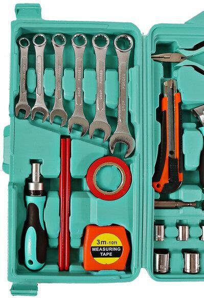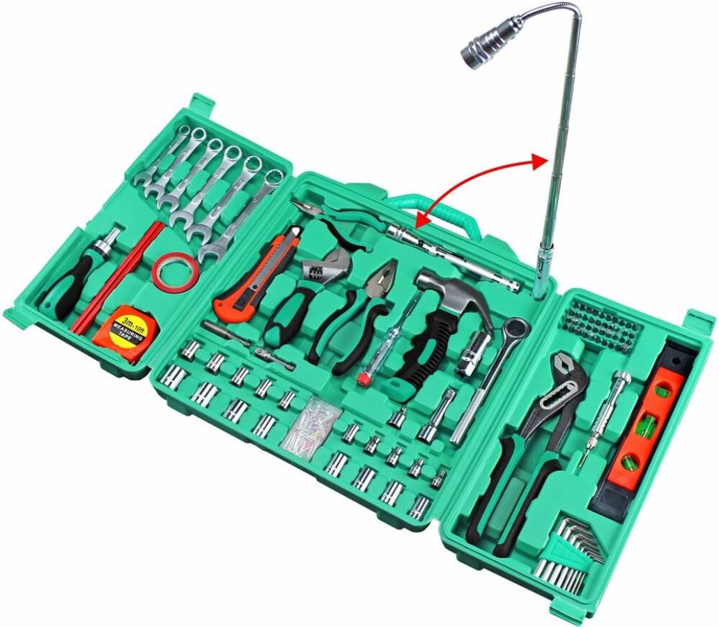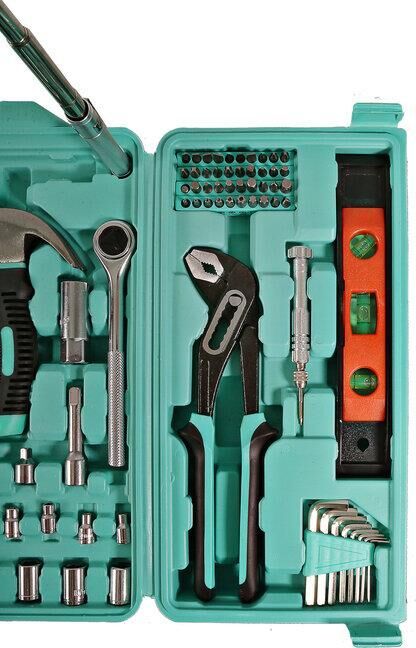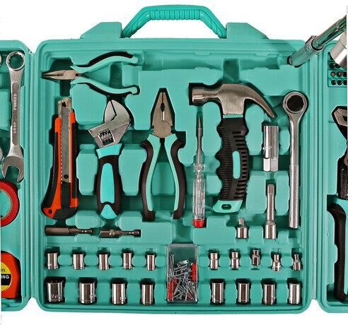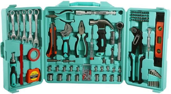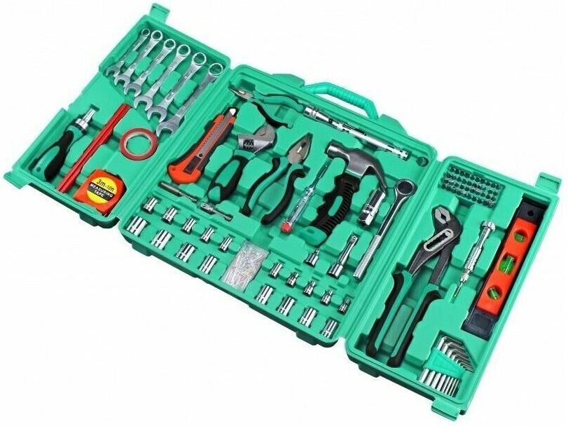 Двухкомпонентные ручки инструментов для комфортной работы. Фонарь LED с магнитом устанавливается в угол кейса при необходимости.Ключи комбинированные 10-12-13-14-15-17 Карандаш 2 шт Изолента Рулетка 3м Рукоятка отвертки с реверсом Биты: SL: 4-5-6-7-1/8-3/16-1/4 PH: 0-1-2 (2 шт) -3 PZ: 0-1-2 (2 шт) -4 Hex: 2-3-4-5-6-3/32-1/8-5/32-3/16-1/4 Pro Torx: 10-15-20-25-30-40 Torx : 30-40 TW: 1,2,3,4 (tri-wing) Отвертка индикаторная Фонарь LED с магнитом 8" разводной ключ (200мм) Нож строительный 9mm 6" плоскогубцы (150мм) МИНИ Молоток-гвоздодер, 250г Круглогубцы 100мм Трещотка 3/8" 1/4" головки 4-4.5-5-6-7-8-9-10-11-12 3/8" головки 9-10-11-12-13-14-15-17 Адаптер 1/4х3/8 Переходник для шуруповерта на головки 3/8 Магнитный держатель 3/8"х60 Удлинитель 3/8"х75 Головка свечи зажигания 5/8" (16мм) Набор крепежа 87 предметов Клещи переставные 200 мм УСИЛЕННЫЕ Отвертка часовая 5 в1 Уровень Набор шестигранных ключей 1.5-2-2.5-3-4-5-5.5-6