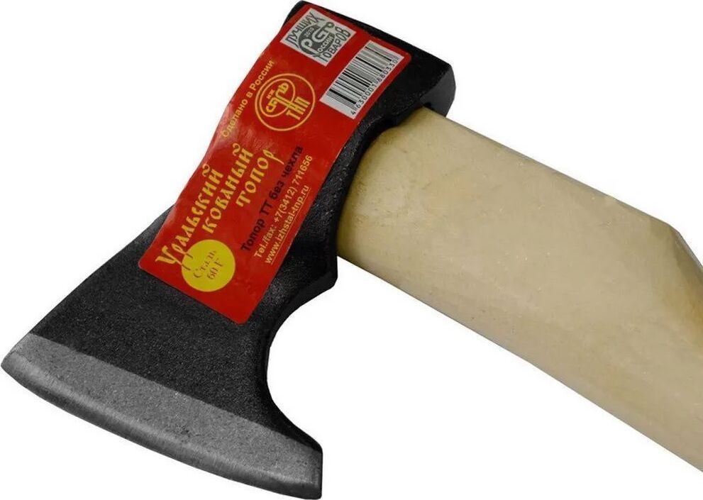 Марка стали: 60Г. Твердость стали: 48-57 HRC. Ширина лезвия: 100 мм. Длина топорища 400 мм. Вес: 0,9 кг. ТУ 4833-013-14737939-2003. Лезвие топора изготовлено из прочной пружинной стали марки 60Г. Технологический процесс формообразования рабочей части топора включает в себя ковку и особую термическую обработку, благодаря чему лезвие приобретает твердость и стойкость. Топорище производится из древесины твердых лиственных пород и покрывается лаком. Во избежание коррозии лезвие дополнительно обрабатывается лаком. Топор предназначен для различных хозяйственных работ в походных условиях.