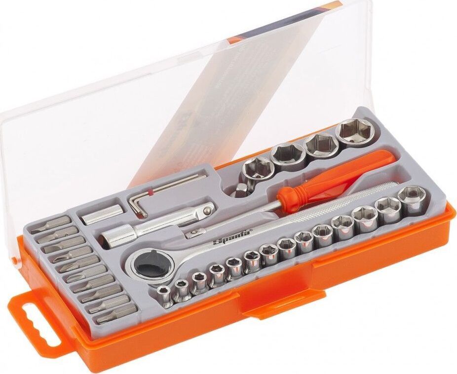 Слесарно-монтажный набор предназначен для монтажа и демонтажа резьбовых соединений. Набор представляет собой 37 предметов из стали, упакованных в яркий кейс. Количество в наборе, шт 37. Тип головок 6-гранные. Присоединительный размер 1/4 + 1/2 дюйма. Количество граней 6. Система измерения метрическая. Min размер головки, мм 4. Max размер головки, мм 13. Комбинированные ключи нет. Трещотка есть. Torx есть. Материал кейса пластик. Свечной ключ нет. Свечные головки нет. Размер посадки головки 1/4; 1/2 дюйма. Дюймовые головки в комплекте нет. Тип ключа нет. Хвостовик бит 1/4 (тип С).