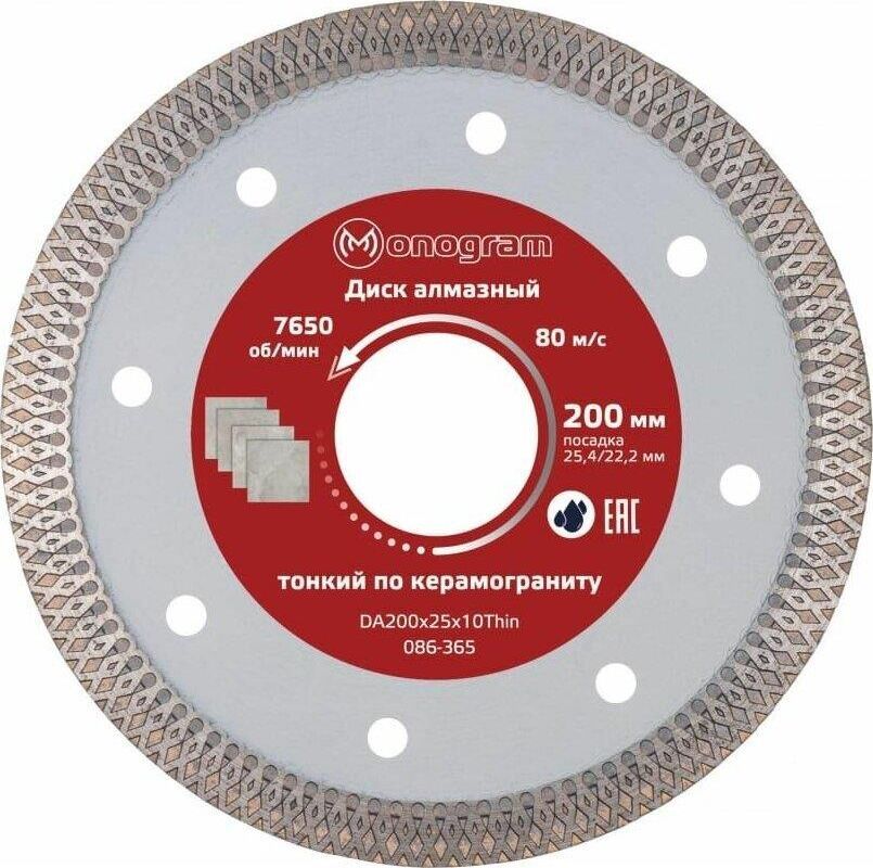 Диск алмазный турбо-тонкий Special 200х25,4/22,2x10мм по керамограниту