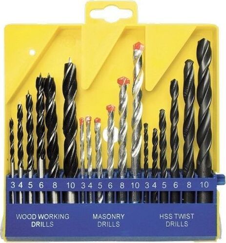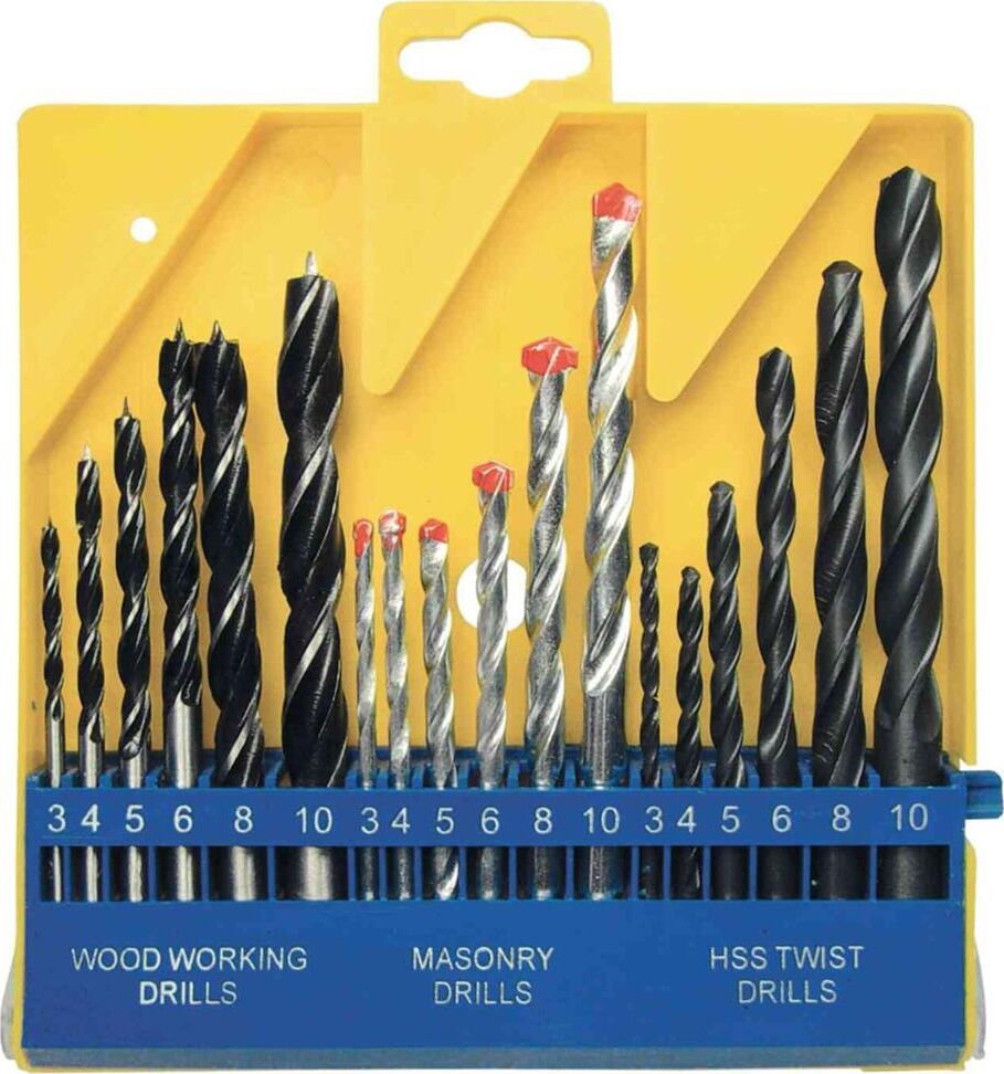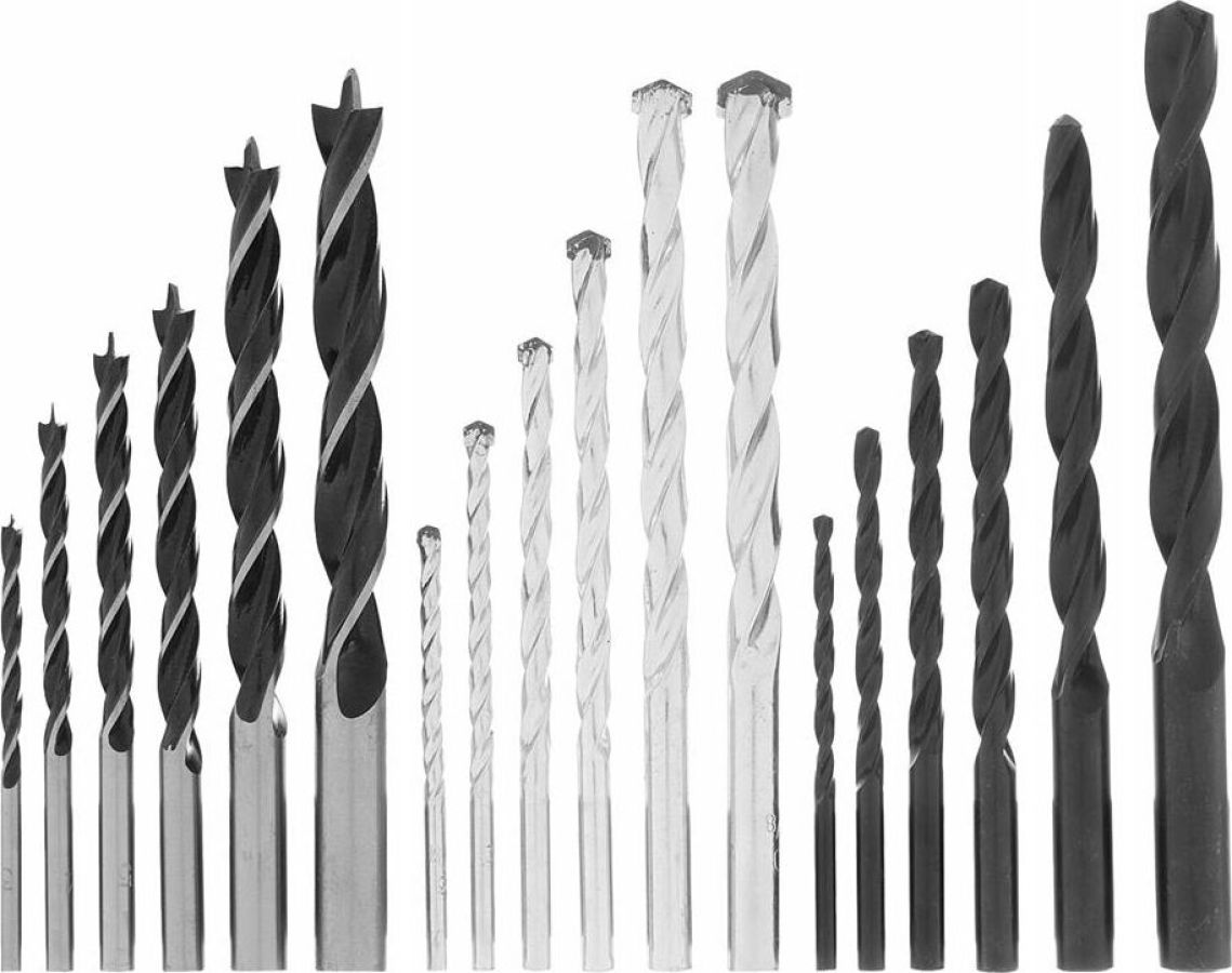 Количество предметов 18. Материал обработки дерево, металл, бетон. Материал сверл по бетону 40Х, ВК6. Материал сверл по дереву углеродистая сталь. Материал сверл по металлу HSS. Размер сверл по бетону, мм 3 х 60, 4 х 73, 5 х 85, 6 х 97, 8 х 118, 10 х 118. Размер сверл по дереву, мм 3 х 60, 4 х 75, 5 х 85, 6 х 91, 8 х 114, 10 х 120. Размер сверл по металлу, мм 3 х 60, 4 х 75, 5 х 85, 6 х 91, 8 х 115, 10 х 13.1 Страна производства Китай. Тип хвостовика цилиндрический.