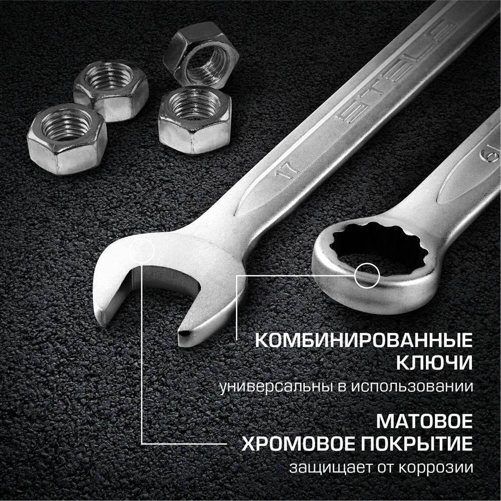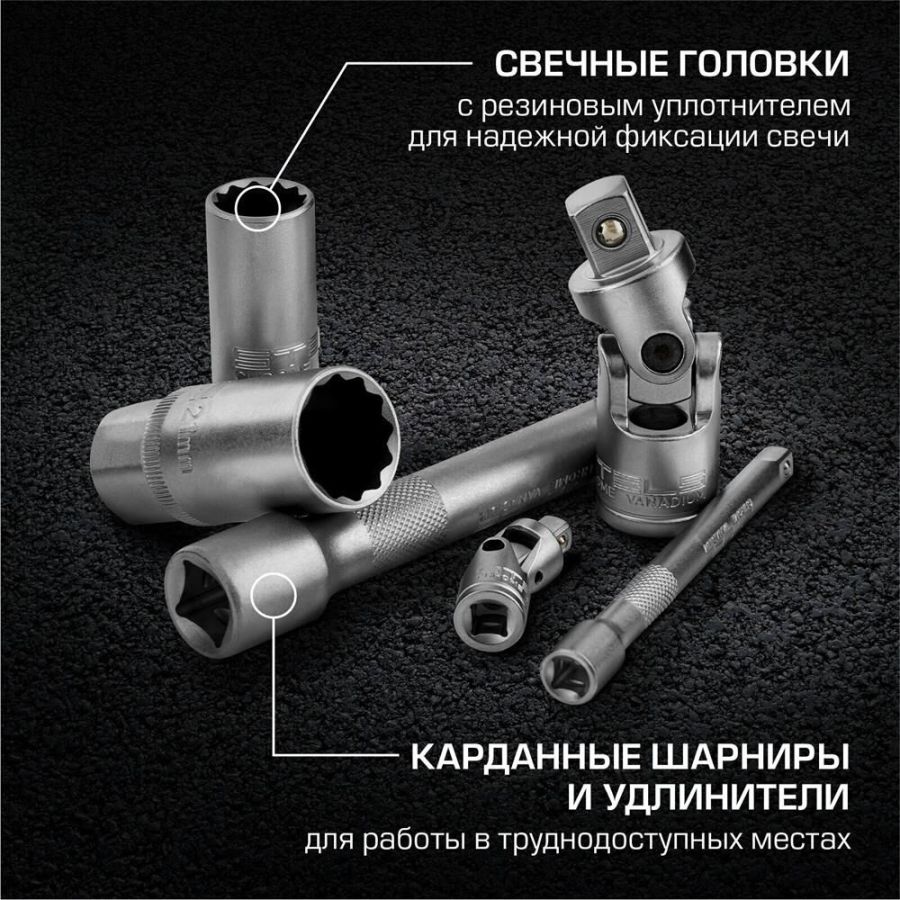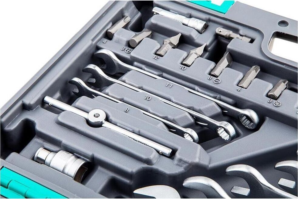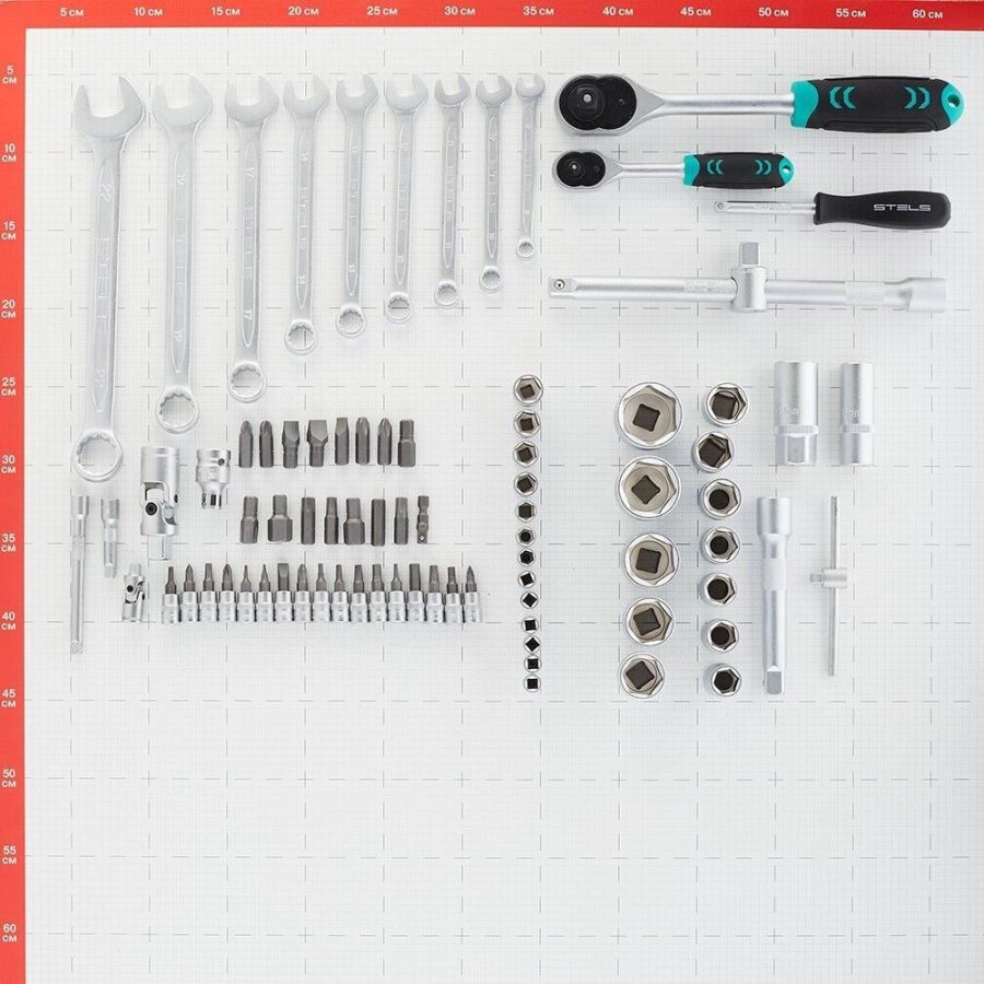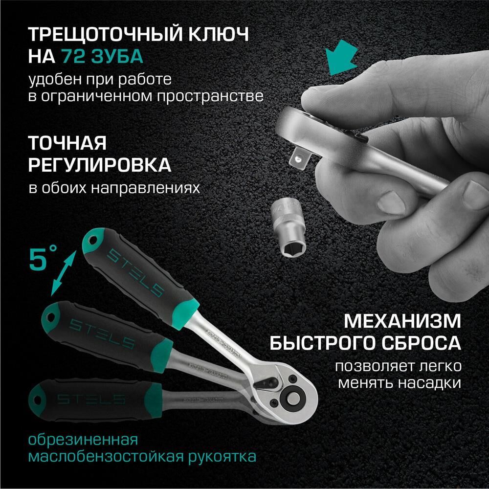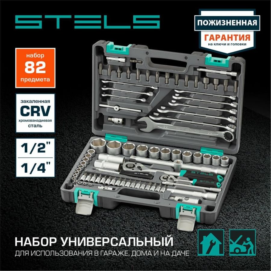 Наборы инструмента торговой марки STELS разработаны специально для автолюбителей и центров технического обслуживания. Каждый этап производства контролируется в соответствии с международными стандартами. Головки и комбинированные ключи изготовлены из хромованадиевой стали, придающей инструменту исключительную твердость в сочетании с легкостью. Биты, биты-вставки и отвертки производятся из стали S2, улучшающей свойства инструмента. Набор комплектуется трещотками с реверсом и быстрым сбросом, трещоточный механизм имеет 72 зуба и обеспечивает исключительную мягкость и плавность в работе. Шаг зуба 5 град. Все наборы упакованы в кейс, изготовленный из жесткого противоударного пластика, с металлическими застежками. Наборы инструмента STELS пригодятся вам не только в автомобиле. С их помощью можно проводить бытовой ремонт дома и на даче, ремонт бытовых конструкций и садовой техники. На все наборы инструментов STELS предоставляется пожизненная гарантия (подробнее об условиях гарантии вы можете узнать из гарантийного т