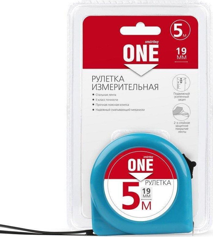 Рулетка измерительная, 5м х 25мм, пластиковый ударопрочный корпус, усиленный зацеп, Smartbuy Tools.