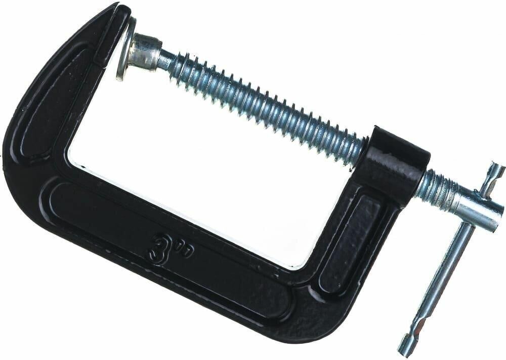 Рама струбцины покрыта цветным лаком. Винт струбцины со специальным зажимом и крупной червячной резьбой позволяет надежно фиксировать предметы. Глубина зажима, мм 55. Ширина зажима, мм 75. Материал корпуса металл.