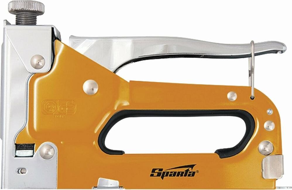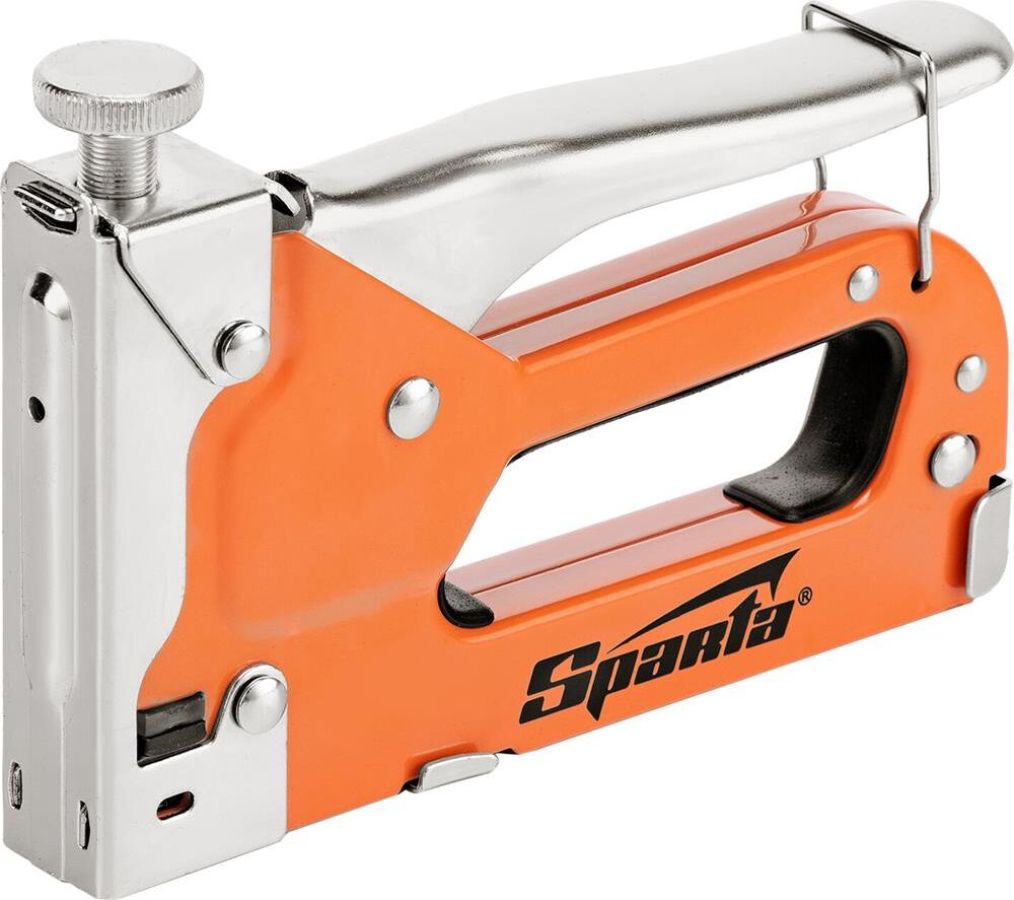 Комплектация: 42002, 4-14 мм, Степлер мебельный SPARTA, стальной, тип скобы: 53, Степлер - 1 шт, Скобы - 1 шт, комплект 200 скоб, регулируемый