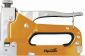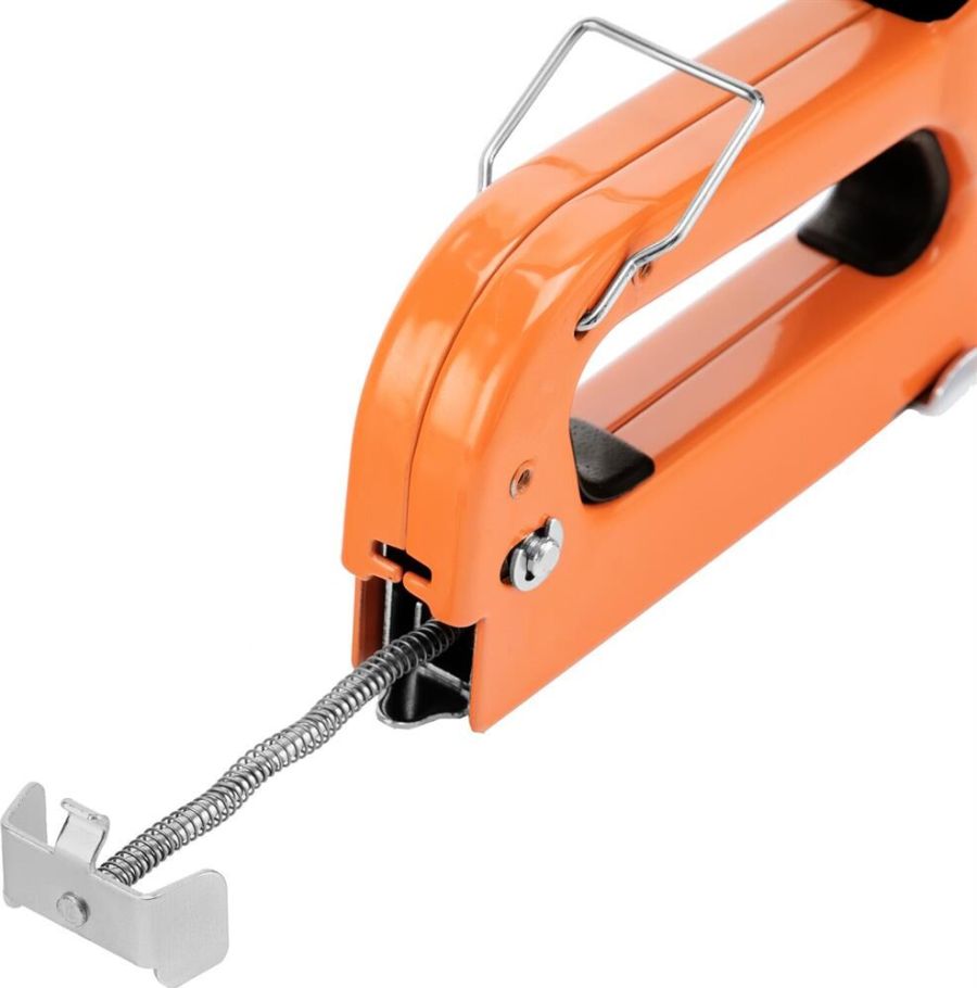 Предназначен для быстрого крепления листового материала (оргалита, фанеры, ДСП, ДВП, пленки, утеплителя) к деревянному основанию. Изготовлен из стали методом штамповки. Защитное покрытие - окрашивание. Плавная регулировка силы удара, для контроля глубины забивания скобы.