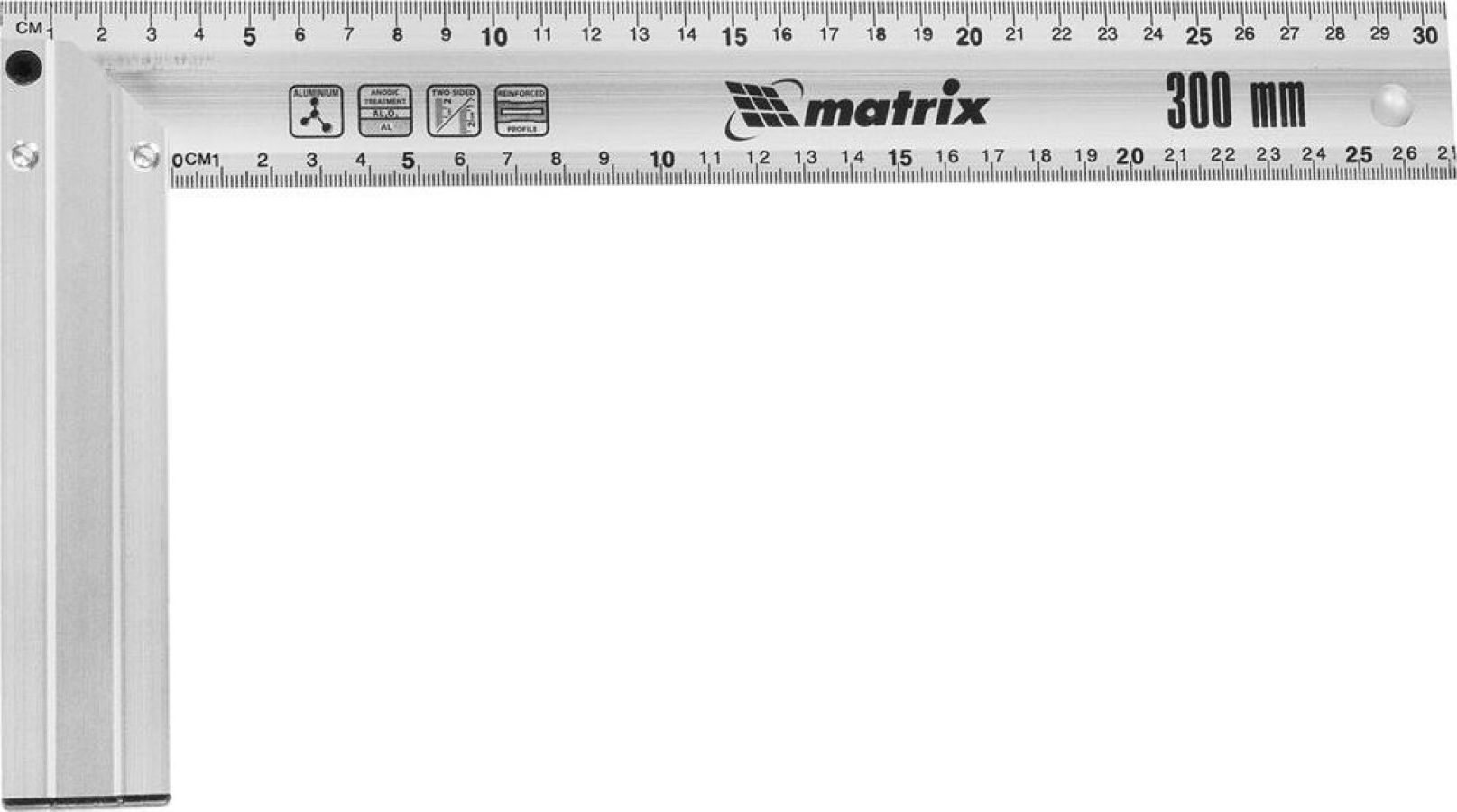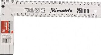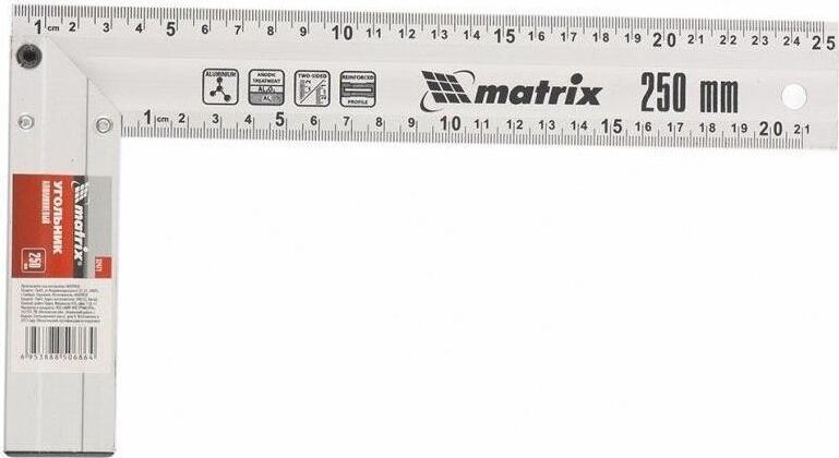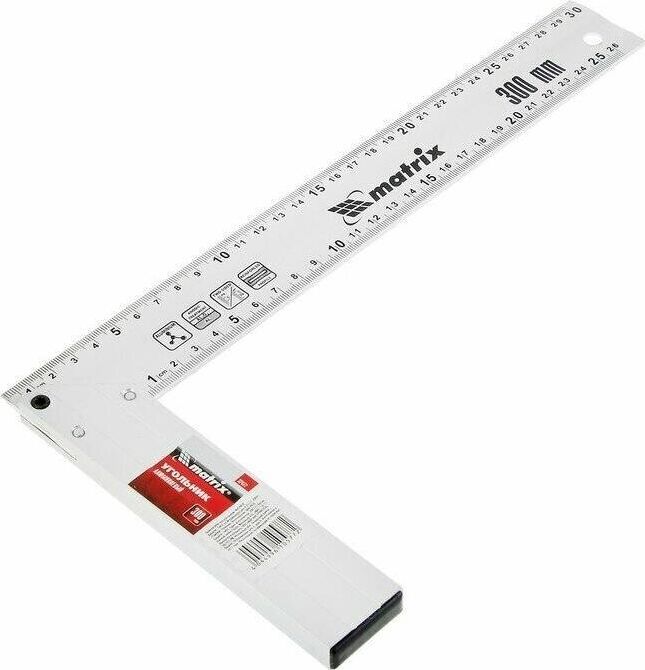 Предназначен для разметки и проверки прямых углов при обработке и сборке изделий. Имеет анодированную поверхность. Алюминиевый измерительный профиль имеет желоб, который придает особую прочность конструкции. Двухсторонняя разметка с обеих сторон профиля. Информативные пиктограммы. Отверстие для подвеса.
