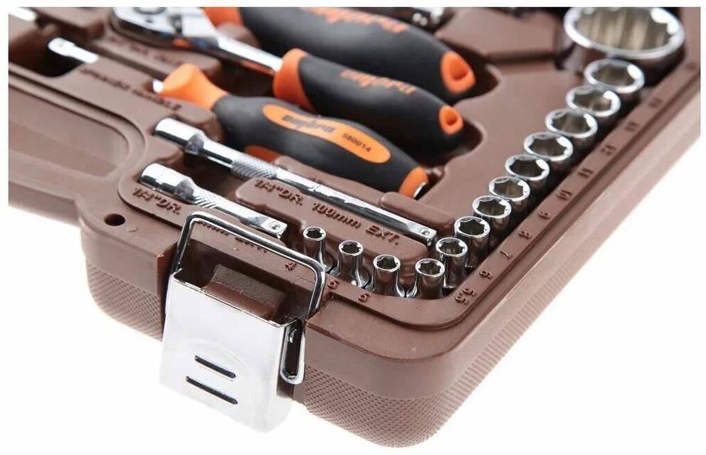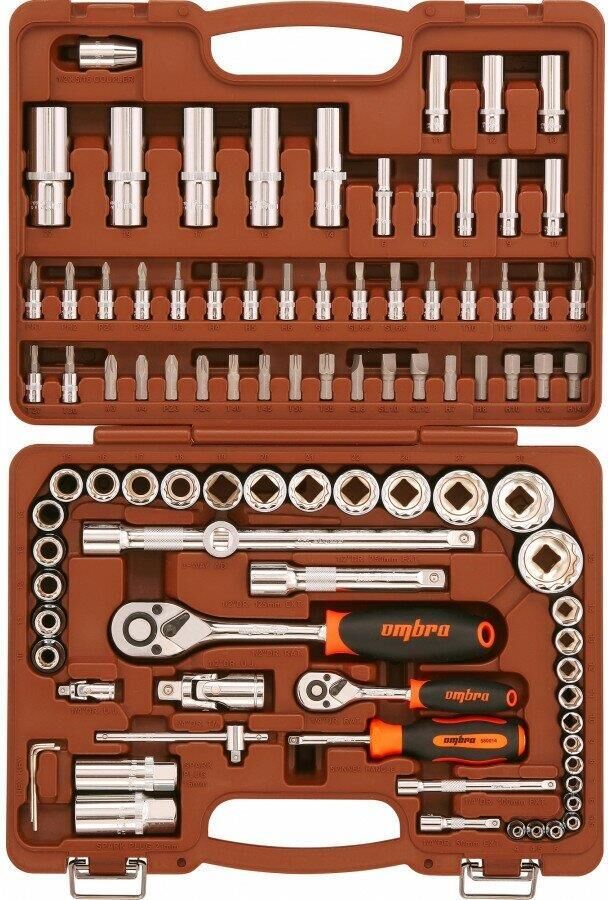 Универсальный набор инструмента популярной комплектации, позволяющей производить обслуживание резьбовых соединений с внешними и внутренними рабочими профилями в широком диапазоне. Комплектация аналогична набору OMT94S, но содержит в своем составе 12-гранные торцевые головки 1/2"DR, что облегчает проведение работ в труднодоступных местах за счет более удобного позиционирования головки на крепеже и одновременно позволяя обслуживать резьбовые детали с 12-гранным рабочим профилем.