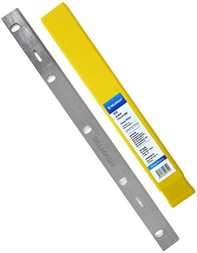 Нож BELMASH 270х2х20 65MN предназначен для многофункциональных деревообрабатывающих станков БЕЛМАШ МОГИЛЕВ 2.4, УНИВЕРСАЛ-2500Е, СДМ-2500, SDM-2500М, SDMR-2500 и электрического рубанка CPL-270. В комплект поставки входит один нож из высокоуглеродистой стали. Каждое лезвие прикрепляется к строгальному барабану с помощью 5 винтов. Рекомендации по установке/замене ножей: Отключите оборудование от питающей сети Производите все действия в защитных перчатках во избежание травм Используйте только те сменные элементы, которые рекомендованы производителем.