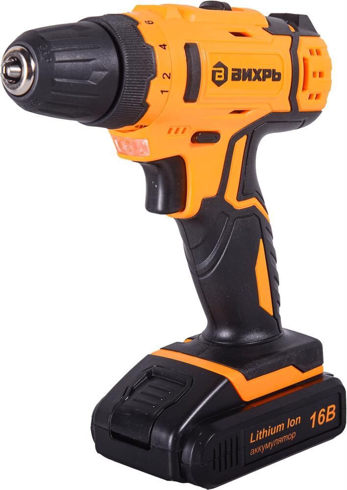Дрель-шуруповерт Вихрь ДА-16Л-2КА станет прекрасным помощником как профессиональному строителю, так и хорошему хозяину. Устройство поставляется в удобном кейсе с набором оснастки из 65 предметов. Не нужно бегать по магазинам в поисках биты, она уже есть в кейсе с шуруповертом. Отличительные особенности модели Вихрь ДА-16Л-2КА: Устройство работает на литий-ионном аккумуляторе с напряжением в 16 В и емкостью в 1,5 А/ч. В комплекте две батареи.