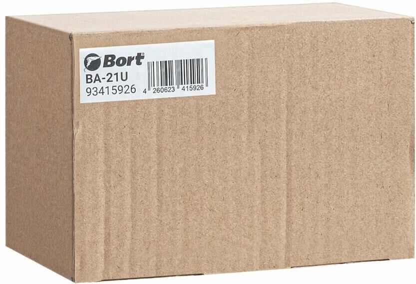 Аккумуляторная батарея Bort BA-21U емкостью 4 амперчаса серии ReX. Пиковая токоотдача 75 ампер, стабильная выходная мощность более 1кВт. Может заряжаться слайдерной и штырьковой зарядкой. Собрана на базе высокотоковых элементов типа 18650. Ключевые особенности аккумуляторов серии Real Extreme (ReX): Очень высокая токоотдача с инструментом. Увеличение мощности до 50% по сравнению с обычными аккумуляторами. Имеют множество систем защит таких как: защита от перегрузок защита от глубокого переразряда защита от перезаряда защита от перегрева защита от короткого замыкания Все аккумуляторы совместимы с инструментом Макита 18V LXT и их аналогами. Самое идеальное сочетание для максимальной производительности и надежности, это работа инструментом Bort линейки Heavy Duty серии Torque Innovation (Ti) с аккумуляторной серией Real Extreme (ReX). В такой связке вы получите максимальное качество и мощность, которые отвечают современным требованиям в различных сферах применения.