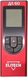 Габаритные размеры изделия (ДхШхВ), мм 100х32х19 Температура эксплуатации, °С от -10 до +40 Степень защиты IP54 Дальность работы, м 0,03 - 60 Класс лазера 2 Длина волны, нм 635 Максимальная мощность излучения лазера, мВт <1 Цвет лазерного луча красный Элемент питания 3,7В; 200 мАч (Li-Ion) Резьба под штатив, дюйм нет Автоматическое выключение, мин 45 Цена деления, мм 1 Точность, мм 3 Память прибора Последние 20 измерений Подсветка дисплея есть Функция непрерывного измерения есть Функция суммирование/вычитание есть Функция измерения площади есть Функция измерения объема есть Функция измерения высоты по одной точке нет Функция измерения высоты по двум точкам (Пифагор) есть Функция измерения высоты по трем точкам есть Функция измерения части высоты по двум точкам нет Функция измерения части высоты по трем точкам есть Функция измерения расстояния между точками нет Функция измерения угла наклона нет Таймер нет Встроенная видеокамера нет Сенсорный дисплей нет