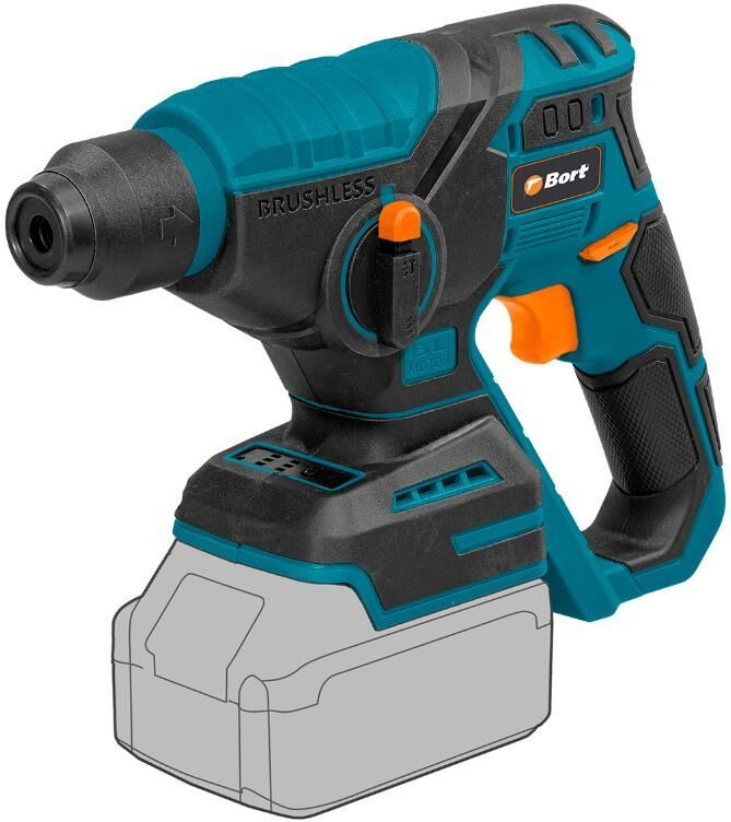 Перфоратор аккумуляторный Bort BHD-18Li-0 Аккумуляторный перфоратор Bort BHD-18Li-0 — это универсальный инструмент, который станет незаменимым помощником как для профессионалов, так и для домашних мастеров. Он предназначен для сверления отверстий в различных материалах, таких как бетон, кирпич, камень. Основные характеристики: Максимальный диаметр сверления: 20 мм (бетон), 13 мм (сталь), 40 мм (дерево); Количество режимов работы: 2 (сверление, сверление с ударом); Частота вращения шпинделя: 0–950 об/мин; Частота ударов: 0 - 4200 уд/мин; Напряжение аккумулятора: 18 В; Вес: около 1,4 кг. Преимущества: Лёгкость и компактность. Небольшой вес и компактные размеры делают инструмент удобным для использования в труднодоступных местах или на весу. Универсальность. Перфоратор подходит для работы с различными материалами и выполнения разных задач. Отлично подходит для работы с отверстиями под дюбеля.