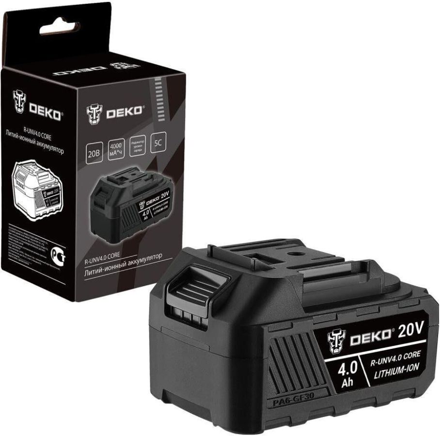 Аккумулятор DEKO R-UNV4.0 CORE применяется для питания электроинструмента DEKO с напряжением 20 В. Технические характеристики: Токоотдача: 5С Устройство аккумулятора: слайдер Тип аккумулятора: Li-Ion Комплект поставки: АКБ - 1 шт Паспорт изделия - 1 шт Коробка - 1 шт