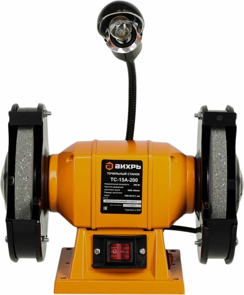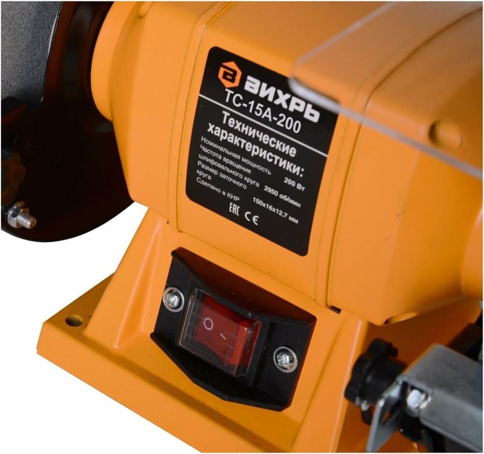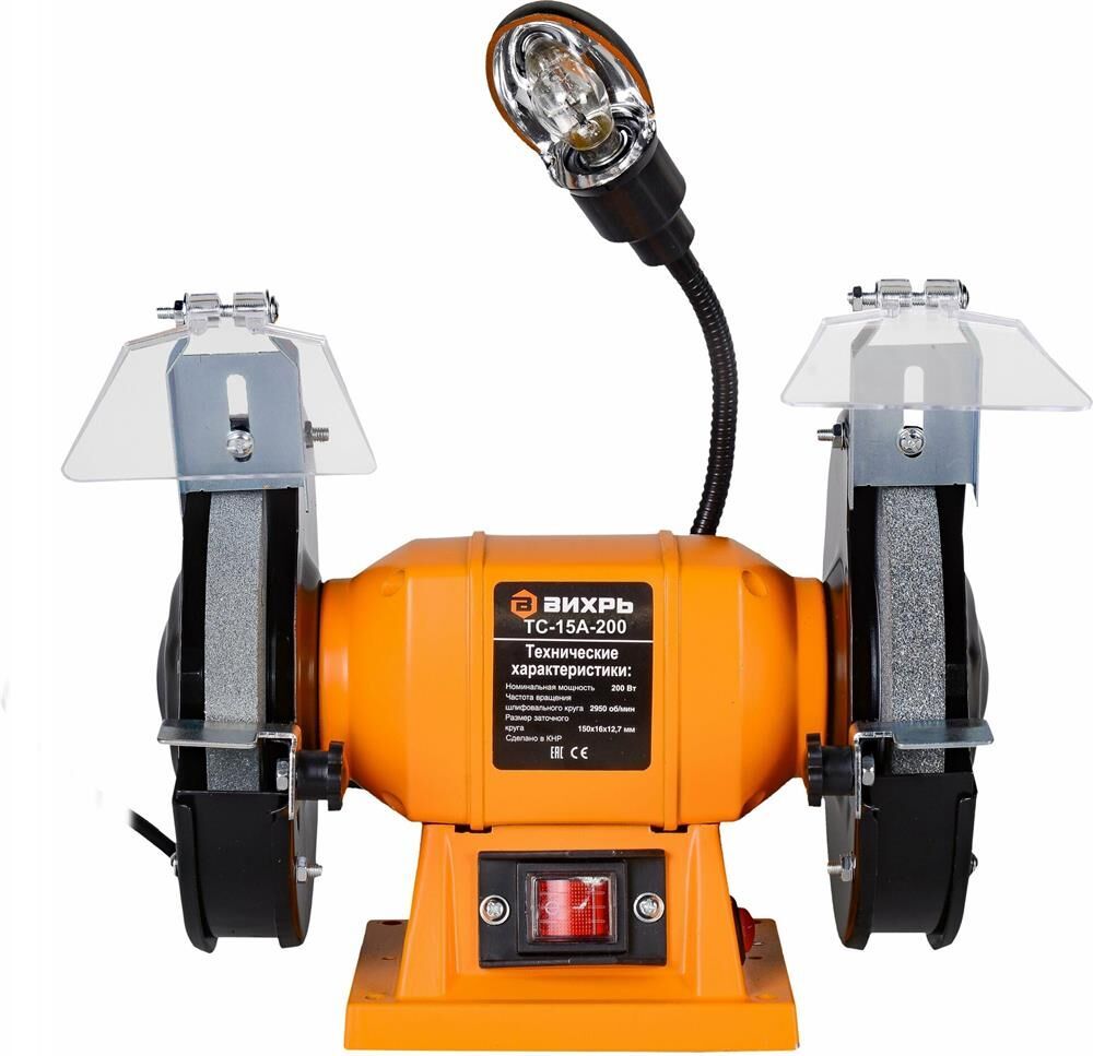Напряжение питающей сети, В 220-230В, ~50 Гц; Мощность, Вт 200; Бренд Вихрь; Габариты упаковки 0.429 × 0.247 × 0.468 м; Размер заточного круга, мм 150x16; Частота вращения, об/мин 2950; Вес, кг 5.5 кг; Диаметр посадочного отверстия диска, мм 12.7; Подсветка рабочей зоны Да