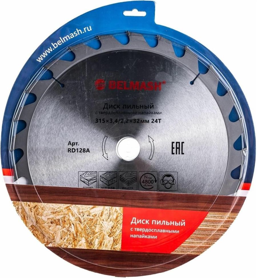 Диск пильный BELMASH 315х3,4/2,2х32ММ 24Т с твердосплавными напайками, которые делают зубья износостойкими, способными сопротивляться повышенным ударным нагрузкам. Назначение: для деревообрабатывающих многофункциональных, циркулярных, форматно-раскроечных станков и торцовочных пил и т. п. Можно устанавливать на станки BELMASH: СДМ-2500, SDM-2500M, SDM-2500PRO, SDMR-2500. Градусы заточки: передний угол 15 градусов, задний угол 15 градусов. Тип зуба ATB: переменные зубья с разносторонним углом наклона главной задней поверхности. Максимальная частота вращения – 4800 об./мин. Посадочный диаметр - 32 мм. В комплекте имеется переходное кольцо на внутренний диаметр 30 мм. Применение: быстрый поперечный и продольный распил древесины, фанеры, МДФ, ДСП, ОСП. Диск соответствует требованиям Технического регламента Таможенного Союза 010/2011 «О безопасности машин и оборудования».