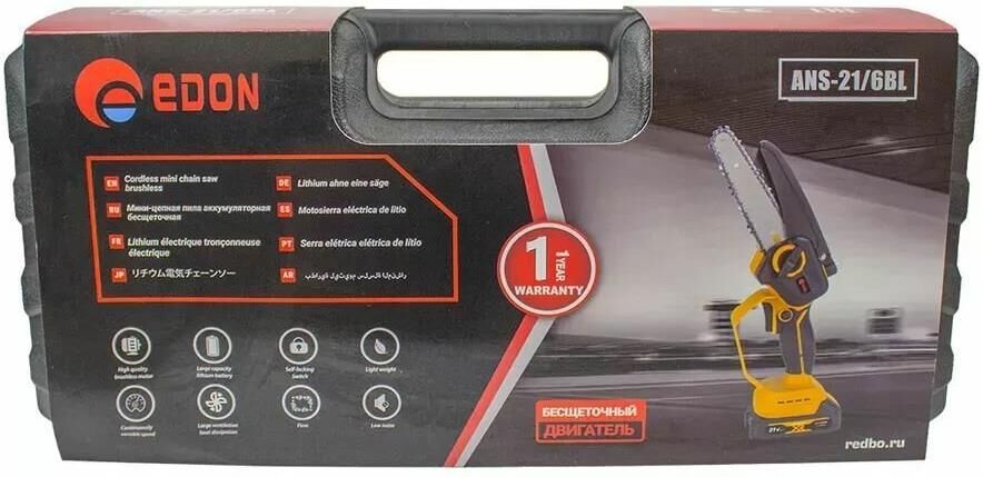 Напряжение 21 В Тип двигателя бесщеточный Расположение двигателя продольное Шаг цепи 1/4 дюйм Количество звеньев 37 шт Бесключевая регулировка натяжения цепи Длина шины (дюйм) 6 Длина шины 15 см Плавный пуск Защитный футляр цепи Наличие кейса Тип аккумулятора Li-ion Емкость аккумулятора 2 А*ч Количество аккумуляторов в комплекте 2