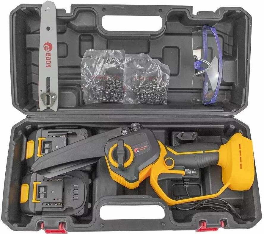 Тип аккумулятора: Li-Ion , Количество аккумуляторов в комплекте: 2 , Функциональные особенности: Блокировка от случайного включения, Плавный пуск , Комплект поставки: Пила мини-цепная аккумуляторная -1 шт. аккумуляторная батарея - 2 шт. зарядное устройство Руководство по эксплуатации Пильная цепь - 2 шт. очки перчатки , Класс инструмента: Бытовой