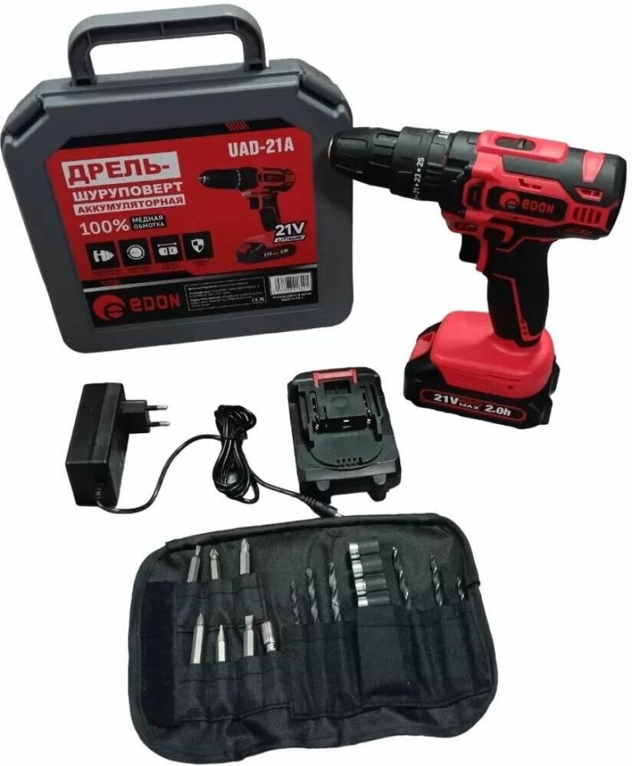 Комплектация: - Дрель: 1 шт. - Аккумуляторная батарея: 2 шт. - Зарядное устройство: 1 шт. - Руководство по эксплуатации: 1 шт. - Упаковка (кейс пластиковый): 1 шт. , Тип аккумулятора: Li-Ion , Количество аккумуляторов в комплекте: 2 , Функциональные особенности: Подсветка, Реверс , Количество скоростей работы: 2 , Класс инструмента: Бытовой , Макс. обороты на 1ой скорости, об./мин: 350 , Макс. обороты на 2ой скорости, об./мин: 1350