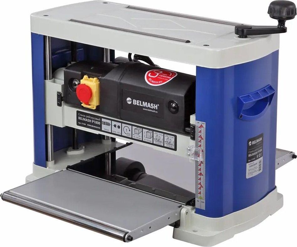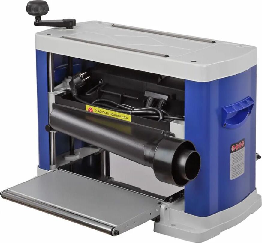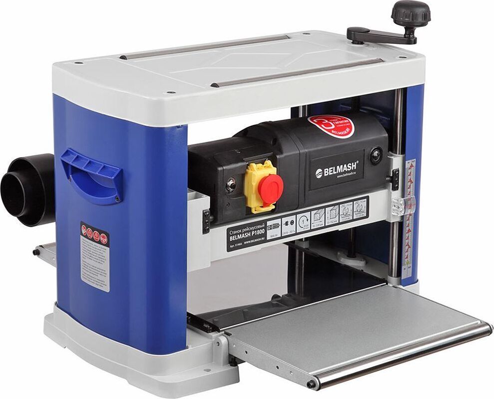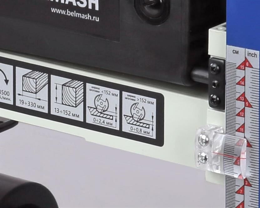 Станок рейсмусовый. Мощность 1800 Вт Напряжение питающей сети 230 В Частота тока 50 Гц Тип электродвигателя Коллекторный Частота вращения ножевого вала 8500 об/мин Количество ножей на валу 2 шт. Размер ножей (Д х Ш х В) 333 х 1,5 х 12 мм Максимальная ширина рейсмусуемой заготовки 330 мм Максимальная высота рейсмусуемой заготовки 152 мм Максимальная глубина строгания 2,4 мм Скорость автоподачи 1 7 м/мин Материал рабочего стола Сталь Размер рабочего стола (Д х Ш х Т) 330 х 240 мм Диаметр патрубка пыле/стружкоудаления 53/(63/102) мм Материал дополнительных столов Сталь Минимальная длина обрабатываемой заготовки 240 мм Минимальная ширина обрабатываемой заготовки 19 мм Минимальная толщина заготовки 5,2 мм Габаритный размер (Д х Ш х В) 680 х 640 х 480 мм