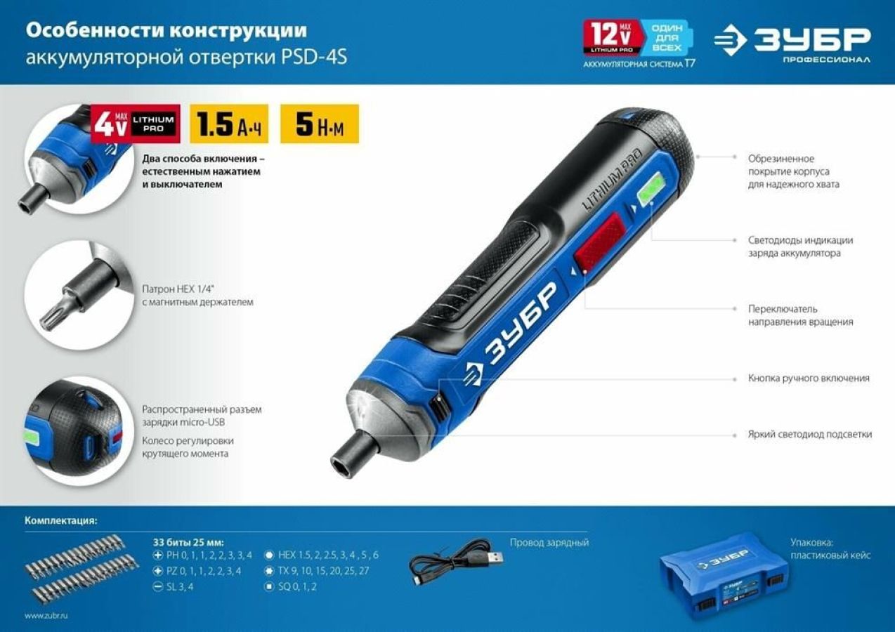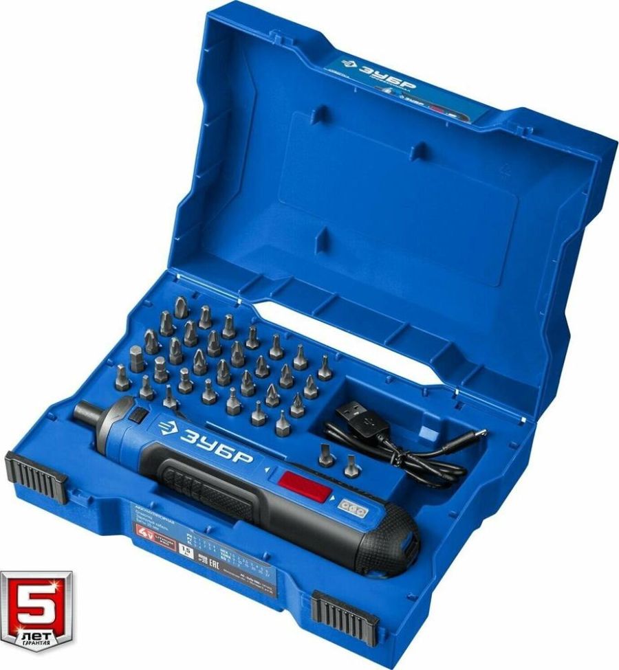 Гарантийный срок: для получения расширенной гарантии, зарегистрировать инструмент на сайте производителя!, 5 лет, необходимо после покупки , Комплектация: ✔ Отвертка - 1 шт. ✔ Зарядный провод - 1 шт. Насадки 25 мм: ✔ PH1 - 3 шт. ✔ PH2 - 3 шт. ✔ PZ1 - 3 шт. ✔ PZ2 - 3 шт. ✔ SL3 - 2 шт. ✔ SL4 - 2 шт. ✔ SQ0 - 2 шт. ✔ SQ1 - 2 шт. ✔ SQ2 - 2 шт. ✔ HEX- 7 шт. ✔ Т9 - 1 шт. ✔ T10 - 1 шт. ✔ T15 - 1 шт. ✔ Кейс - 1 шт. , Тип аккумулятора: Li-Ion , Реверс: есть
