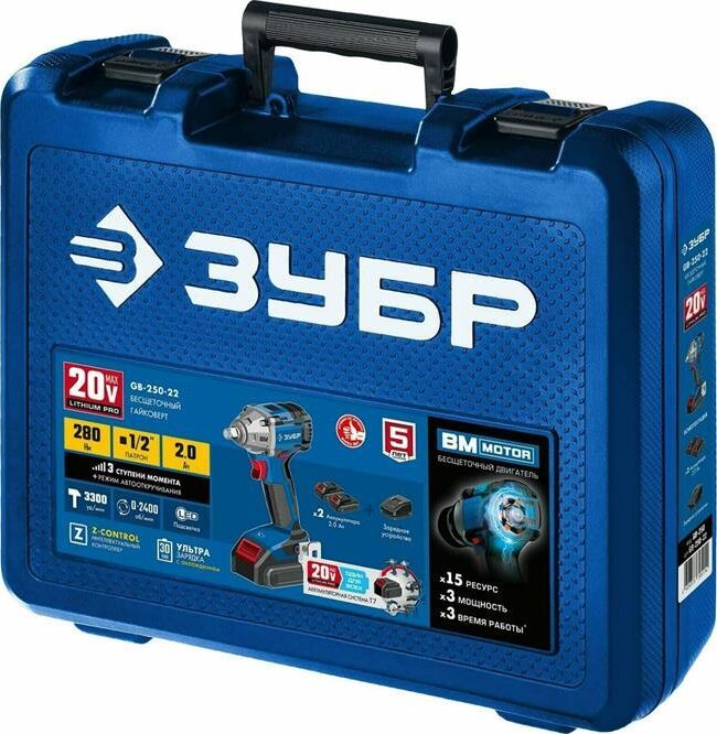 Напряжение изделия, В 20. Частота вращения шпинделя, об/мин 0-2400. Число скоростей 3. Частота ударов, уд/мин 0-3300. Максимальный крутящий момент, Н*м 280. Размеры крепежа М6-М16. Кол-во режимов крутящего момента 3. Тип аккумулятора Li-Ion. Емкость аккумулятора, А·ч 2.0. Тип патрона квадрат. Размер патрона, дюйм 1/2. Электронная регулировка частоты вращения есть. Защита от перегрузки есть. Реверс есть. Блокировка шпинделя нет. Тип двигателя BRUSHLESS, бесщеточный. Тормоз двигателя есть. Ударная функция есть. Подсветка есть. Индикатор заряда батареи есть. Количество аккумуляторов 2. Зарядное устройство импульсное. Время заряда батареи, ч 0.5. Кейс в комплекте есть.