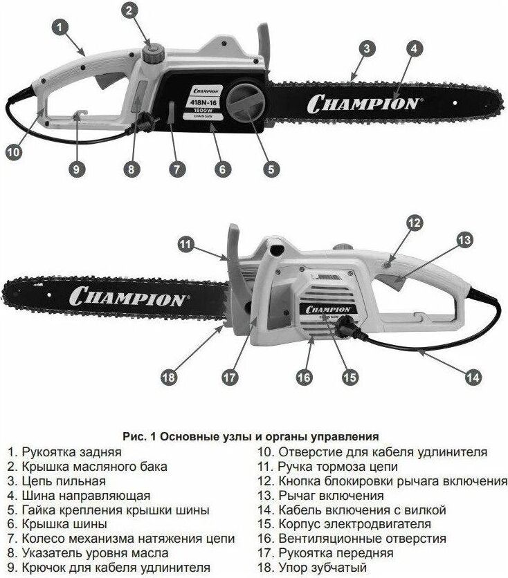 Комплект поставки: масло для смазки цепи и шины 0,1 л, чехол защитный, цепь, шина, руководство по эксплуатации, электропила , Модификация (код производителя): 418N-16 , Емкость масляного бака: 0.1 л , Функции и возможности: регулировка натяжения цепи без инструмента, тормоз цепи