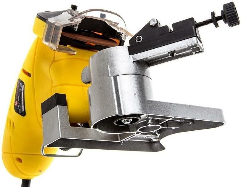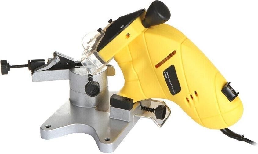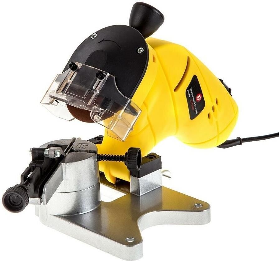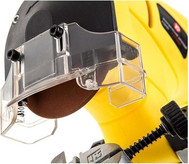 Число оборотов на холостом ходу 3000 об/мин. Размеры заточного круга абразивный круг 100х10х3,2 мм. Угол поворота рабочего стола (влево/вправо) 35 0. Номинальное напряжение/Частота 230 Вт/50 Гц. Класс безопасности (ГОСТ Р МЭК 60745-1-2011) II. Тип привода ремённый. Двигатель однофазный коллекторный. Габариты в упаковке (ДхШхВ) 300х190х200 мм. Вес (брутто/нетто) 1,9х1,6 кг.