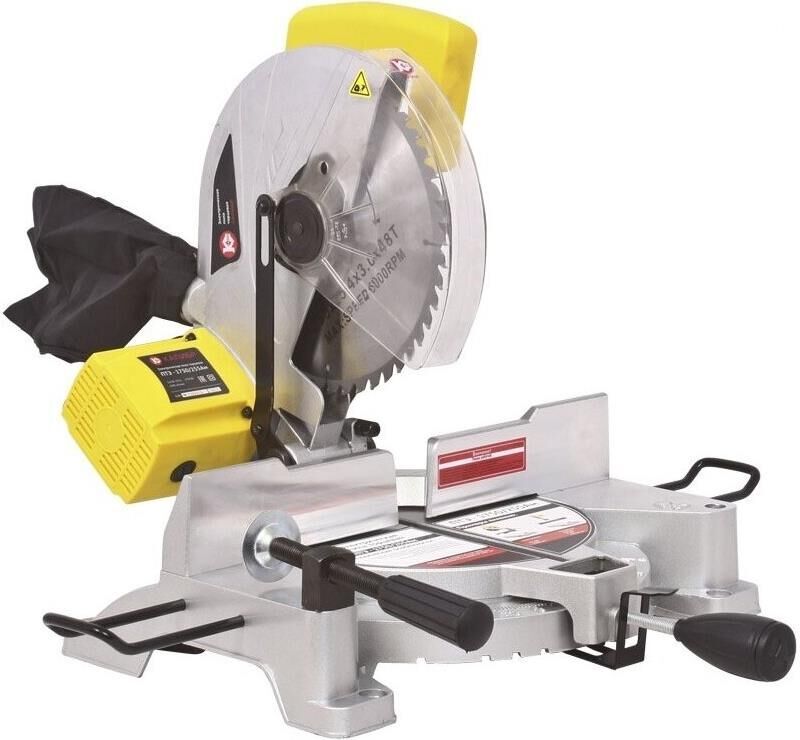 Комплект поставки: угольник пластиковый, пылесборник, щётки графитовые, пила торцевая, дополнительные опоры, диск пильный, руководство по эксплуатации, упаковка