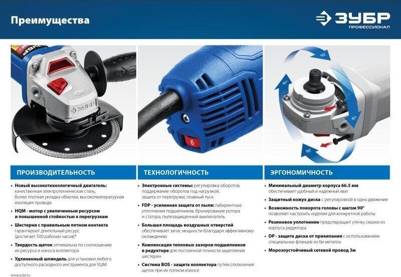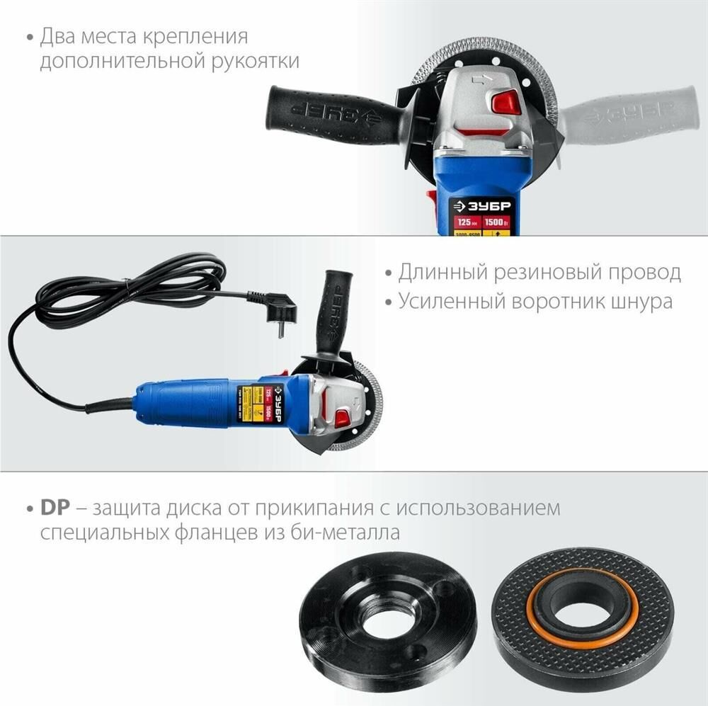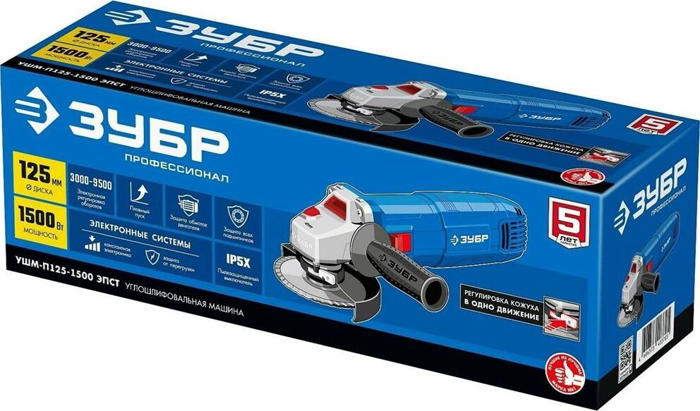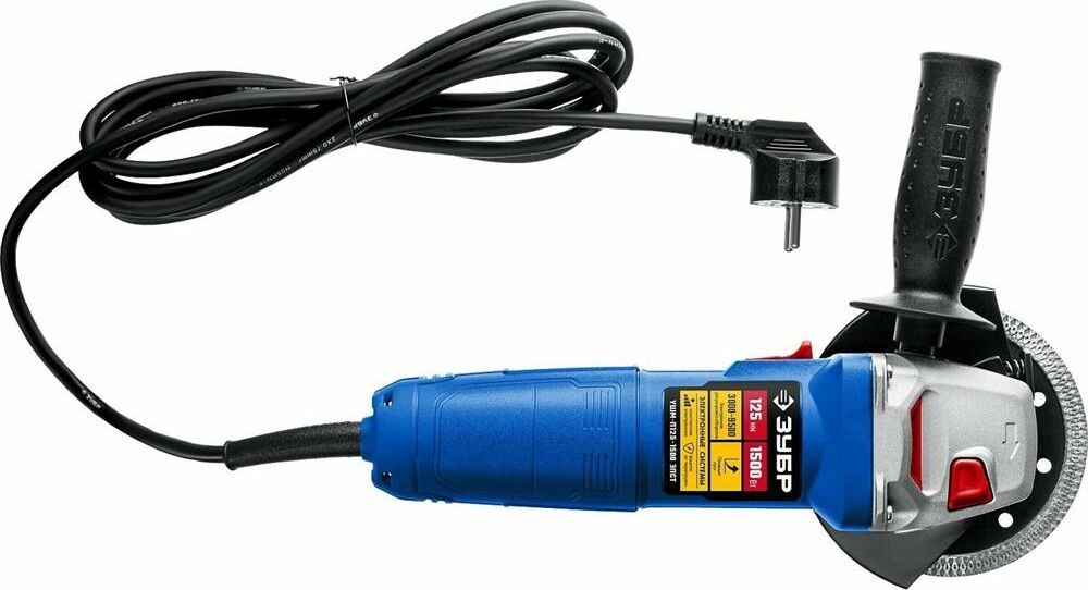Мощность, Вт 1500. Диаметр диска, мм 125. Посадочный диаметр, мм 22.2. Число оборотов, об/мин 3000-9500. Электронная регулировка оборотов есть. Резьба шпинделя М14. Плавный пуск есть. Поддержание постоянных оборотов под нагрузкой есть. Защита от перегрузки есть. Отключение питания при заклинивании диска есть. Защита от непреднамеренного пуска нет. Регулировка положения кожуха без инструмента есть. Защита от повреждения коллектора есть. Фиксация кнопки включения есть. Дополнительная рукоятка есть. Антивибрационная основная рукоятка нет. Поворотная голова есть. Поворотная основная рукоятка нет. Суперфланец есть. Быстрозажимная гайка sds нет. Длина кабеля, м 3. Напряжение, В/Гц 220-240/50. Габариты, см 40х15х11.